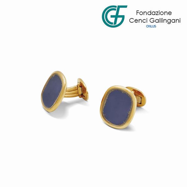in oro giallo 18kt, firmati Patek Philippe, punzone 750, n. seriale 9003 605 e logo, dim. cm 2x2x2, gr. 27 complessivi. Corredati di scatola.
