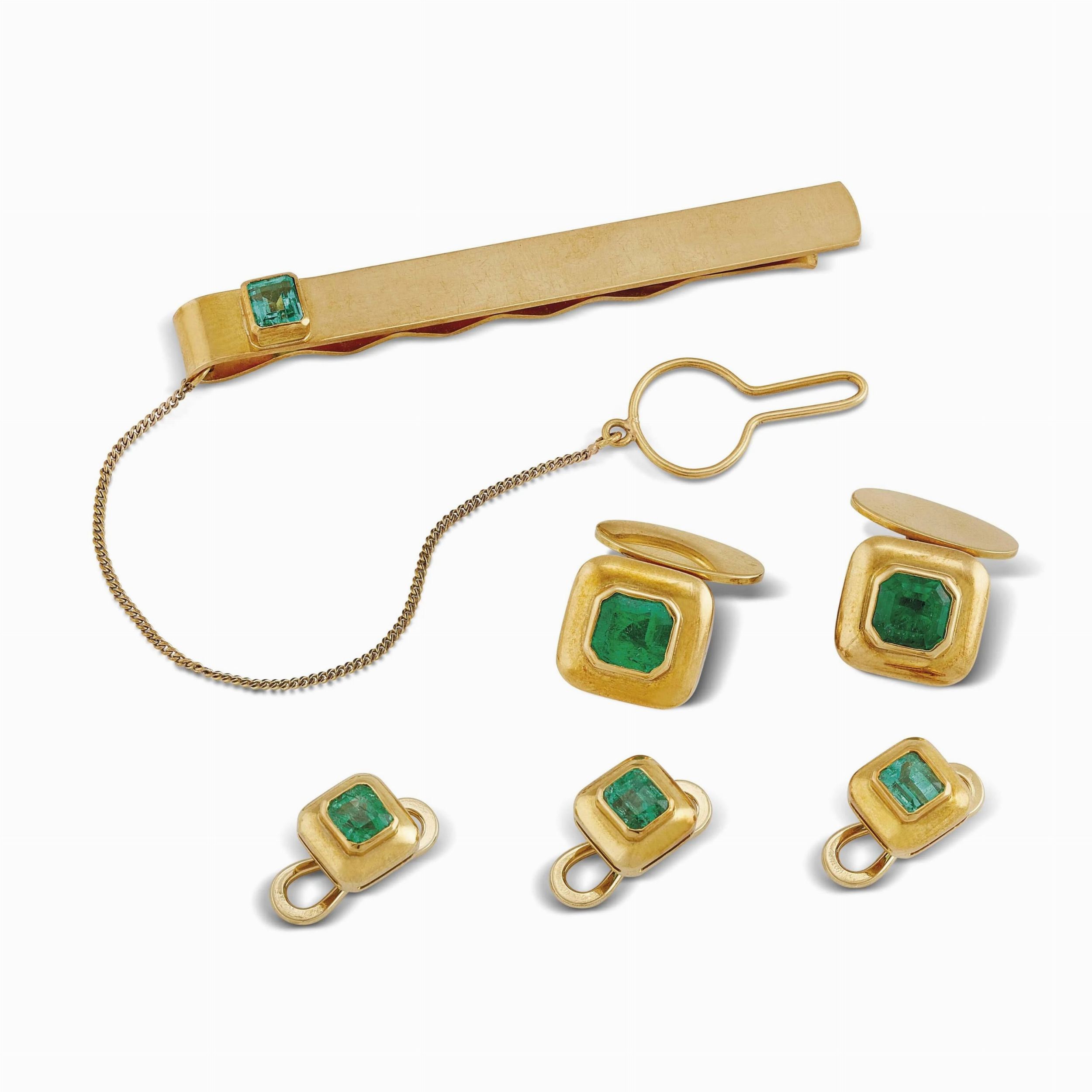 SET DA SPARATO E FERMACRAVATTA CON SMERALDI