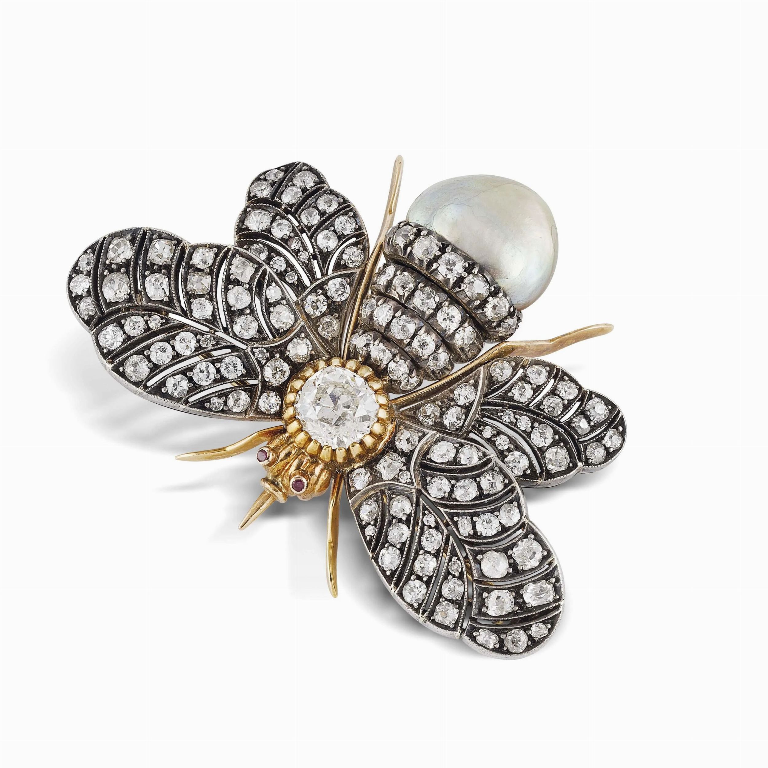 SPILLA A FORMA DI FARFALLA CON PERLA E DIAMANTI