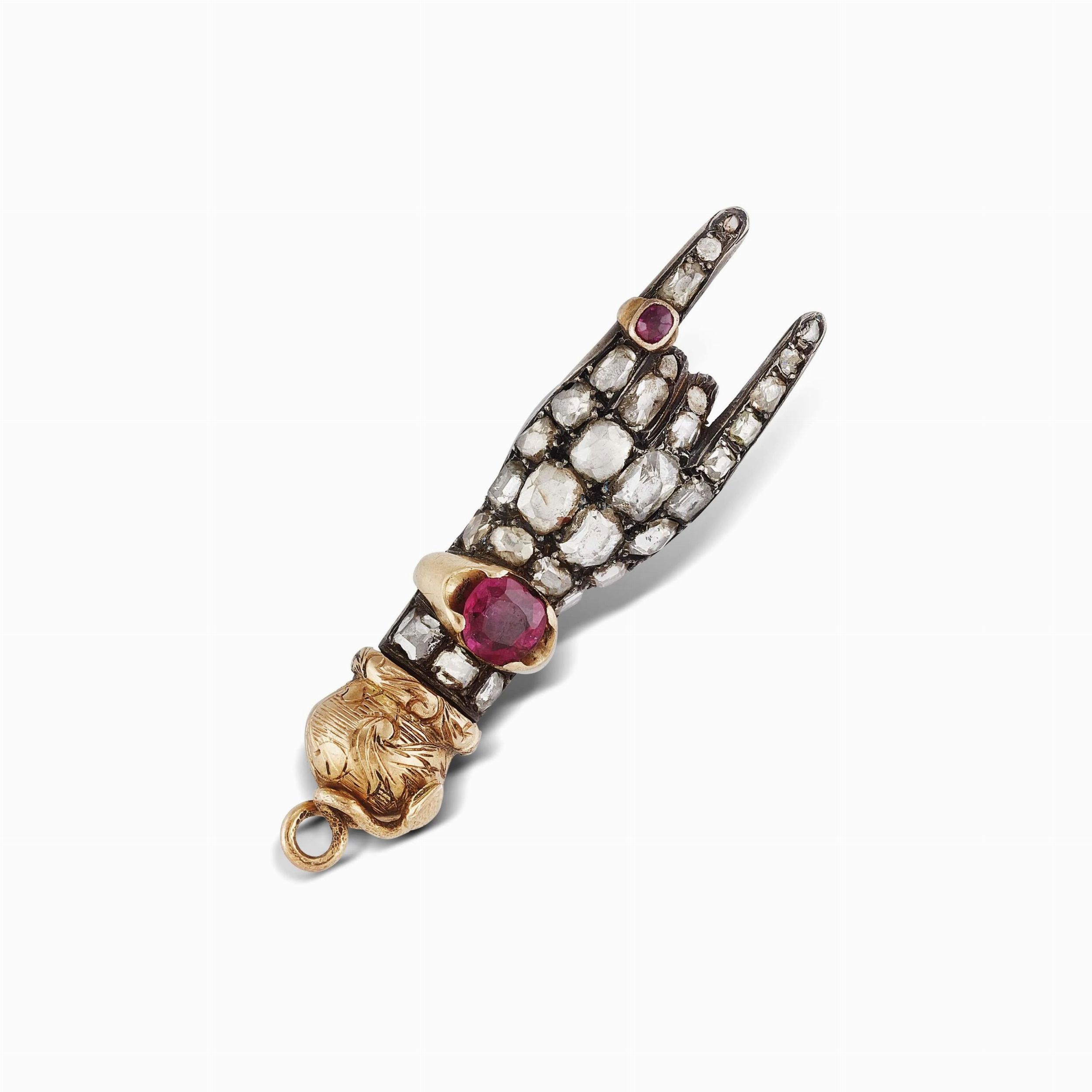 SPILLA A GUISA SCARAMANTICA CON RUBINI E DIAMANTI