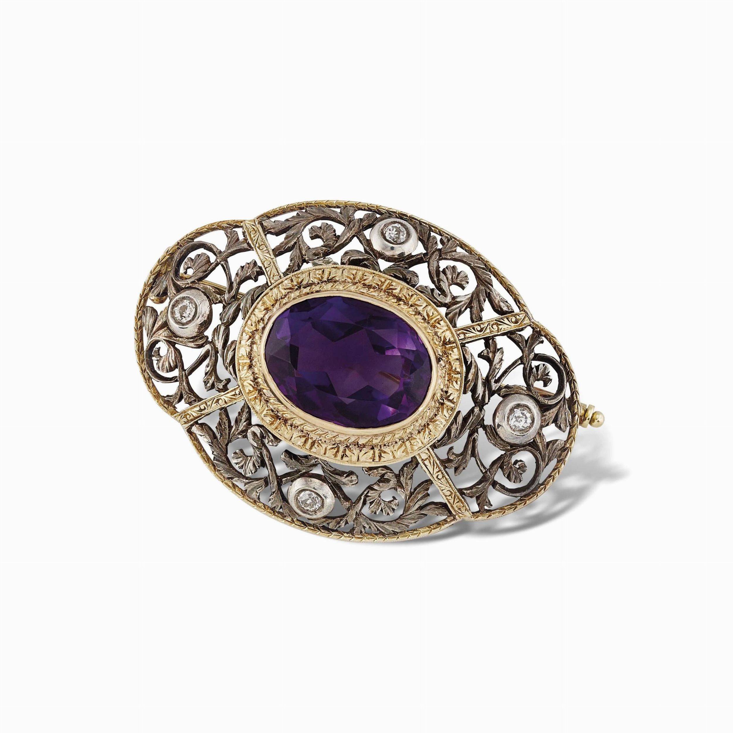 SPILLA CON AMETISTA E DIAMANTI