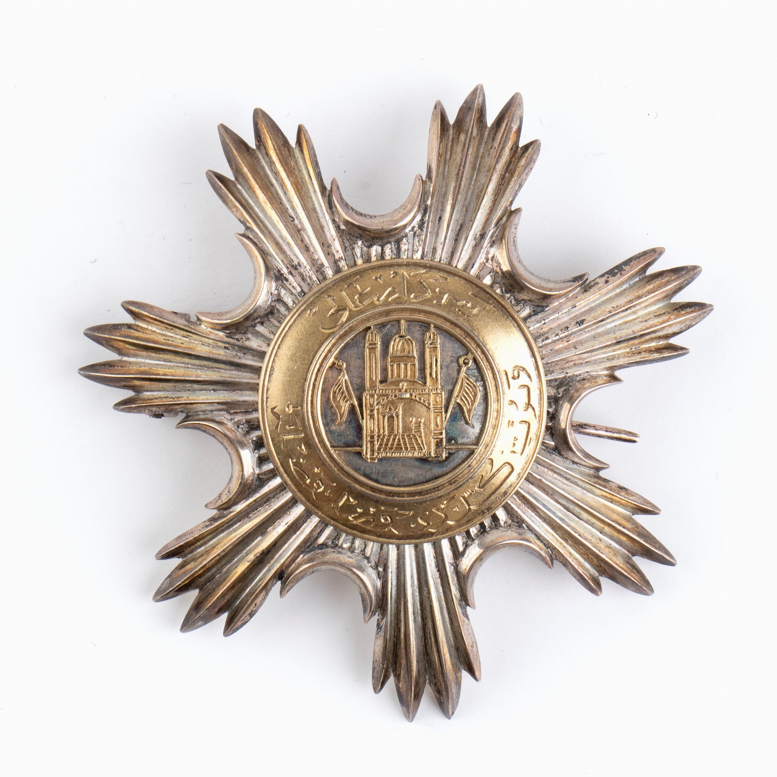 primo quarto XX sec. Istituito nel 1923, placca dell'Ordine di seconda classe in argento e argento dorato, al verso grande spilla centrale, in ottimo stato, Rara.
