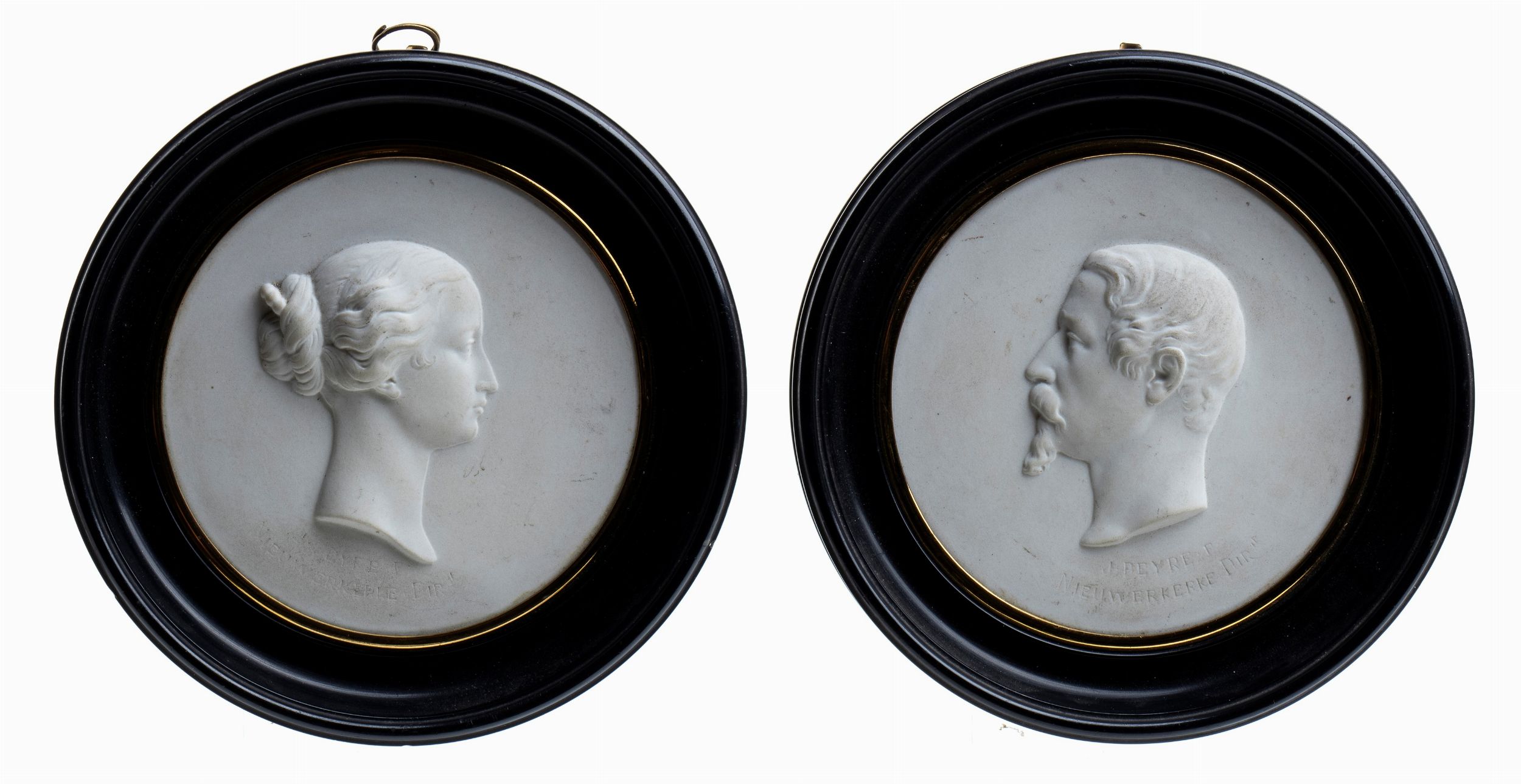 III/IV del XIX secolo in biscuit e cornice in legno coeva