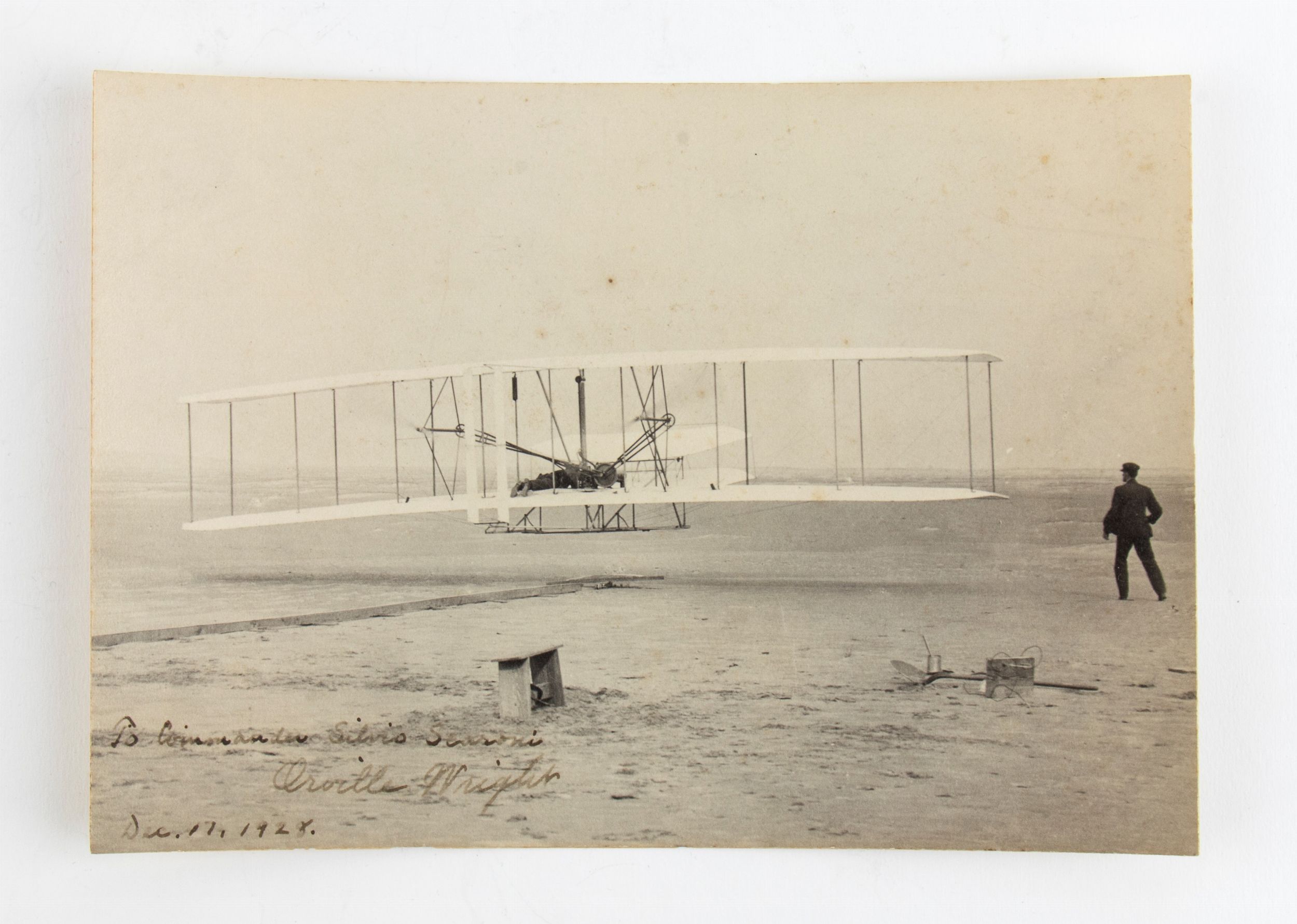 primo quarto XX sec. Fotografia originale del biplano con dedica autografa di Orwell Wright al Generale Silvio Scaroni, pioniere dell'aeronautica e addetto militare aeronautico in Cina, in ottimo stato