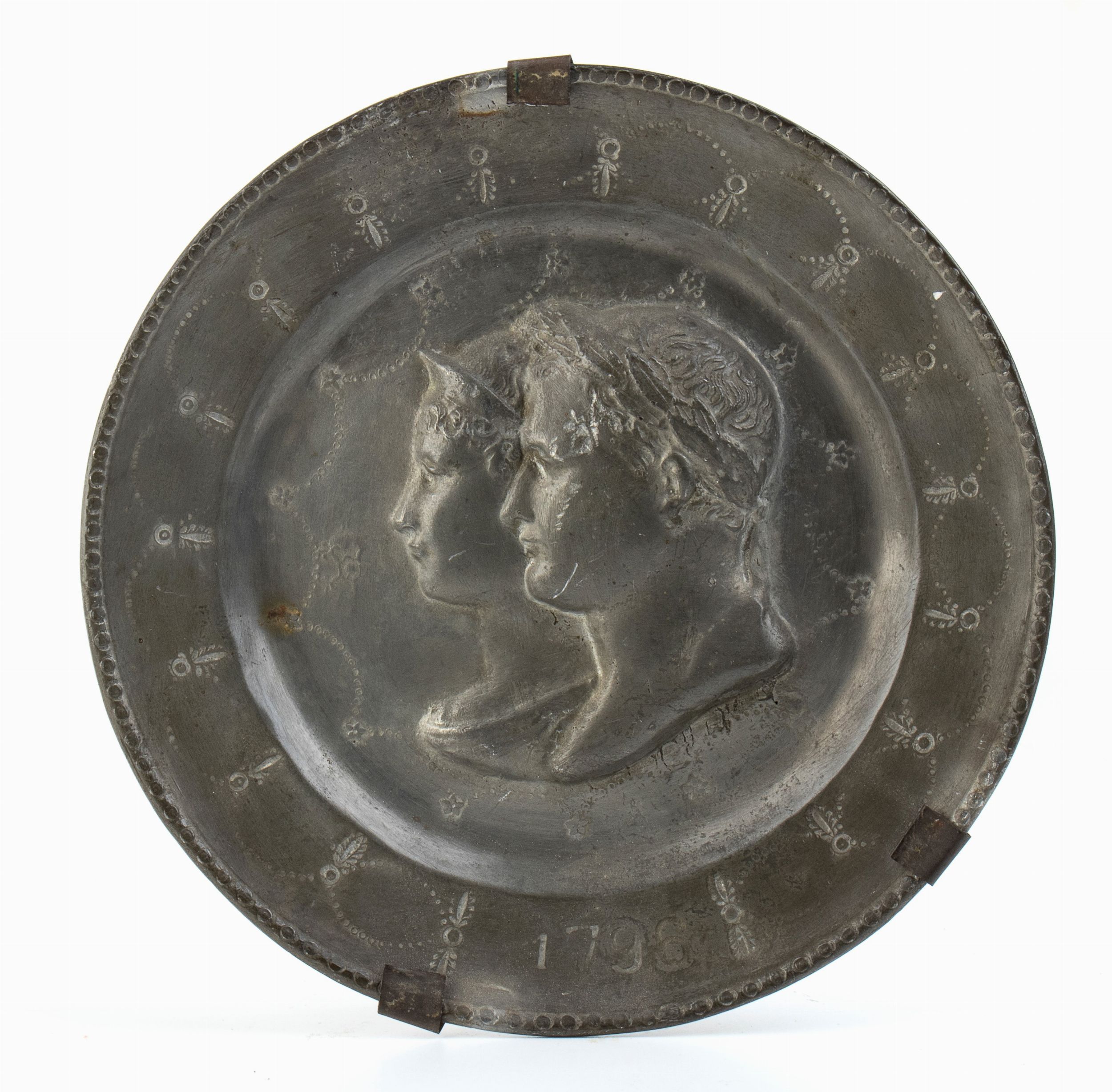 Grande placca in peltro con i busti di Napoleone e Giuseppina