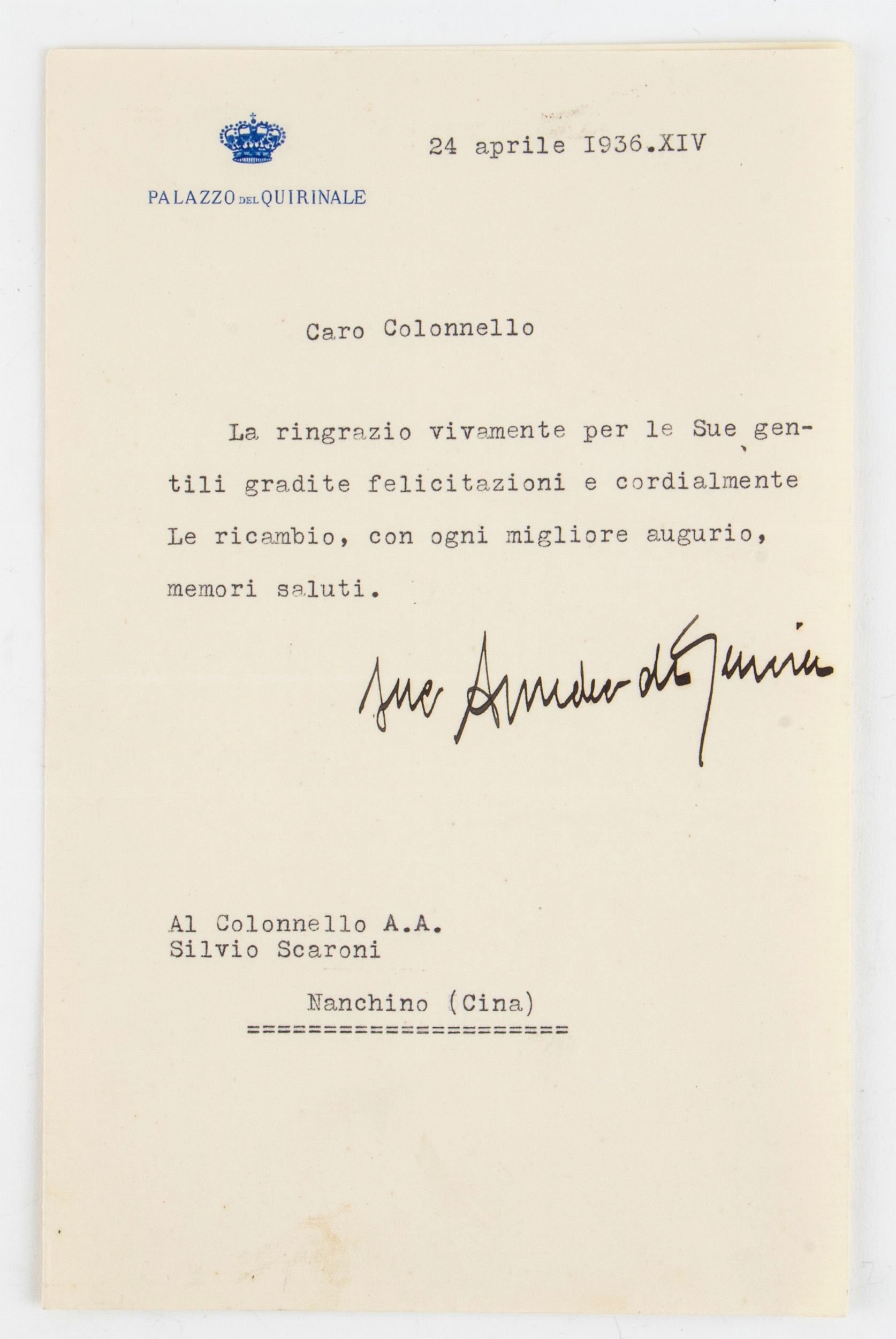 Lettera di ringraziamento al Generale Scaroni da Amedeo di Savoia