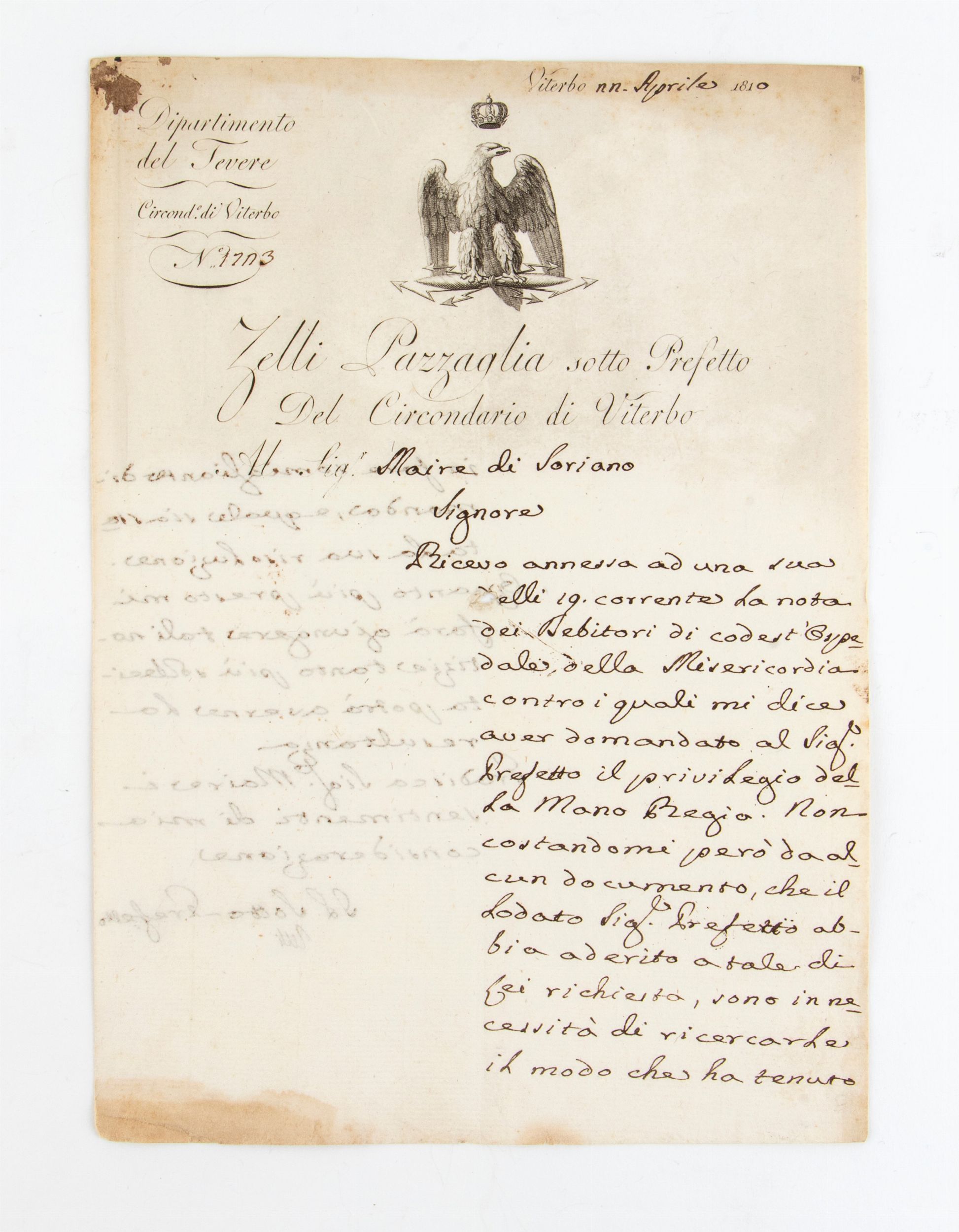 Lettera manoscritta e autografa del sottoprefetto Zelli - Pazzaglia