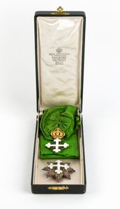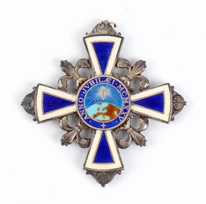 Primo quarto XX sec. Insegna di Gran Croce, placca in argento cesellato e traforato, applicazioni in oro e smalti [..]
