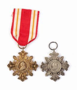 Lotto composto da due medaglia di benemerenza Leone XIII in argento e metallo dorato. Una delle due priva di n [..]