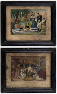 Coppia di stampe popolari in cornice a soggetto napoleonico