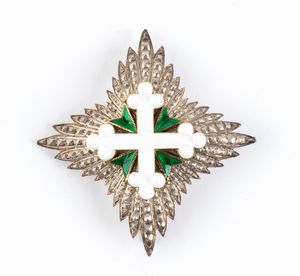 Primo quarto XX sec. Insegna di Gran Croce, placca in argento cesellato e traforato, applicazioni in oro e smalti [..]