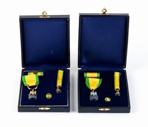 prima metà XX sec. Bell'insieme di insegna e miniatura dell'Ordine, in oro e smalti, in astuccio con marchi del [..]