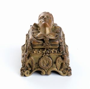 Secondo quarto XX sec. Tabacchiera in legno scolpito con applicata svastica in oro, in buono stato, molto bella, [..]