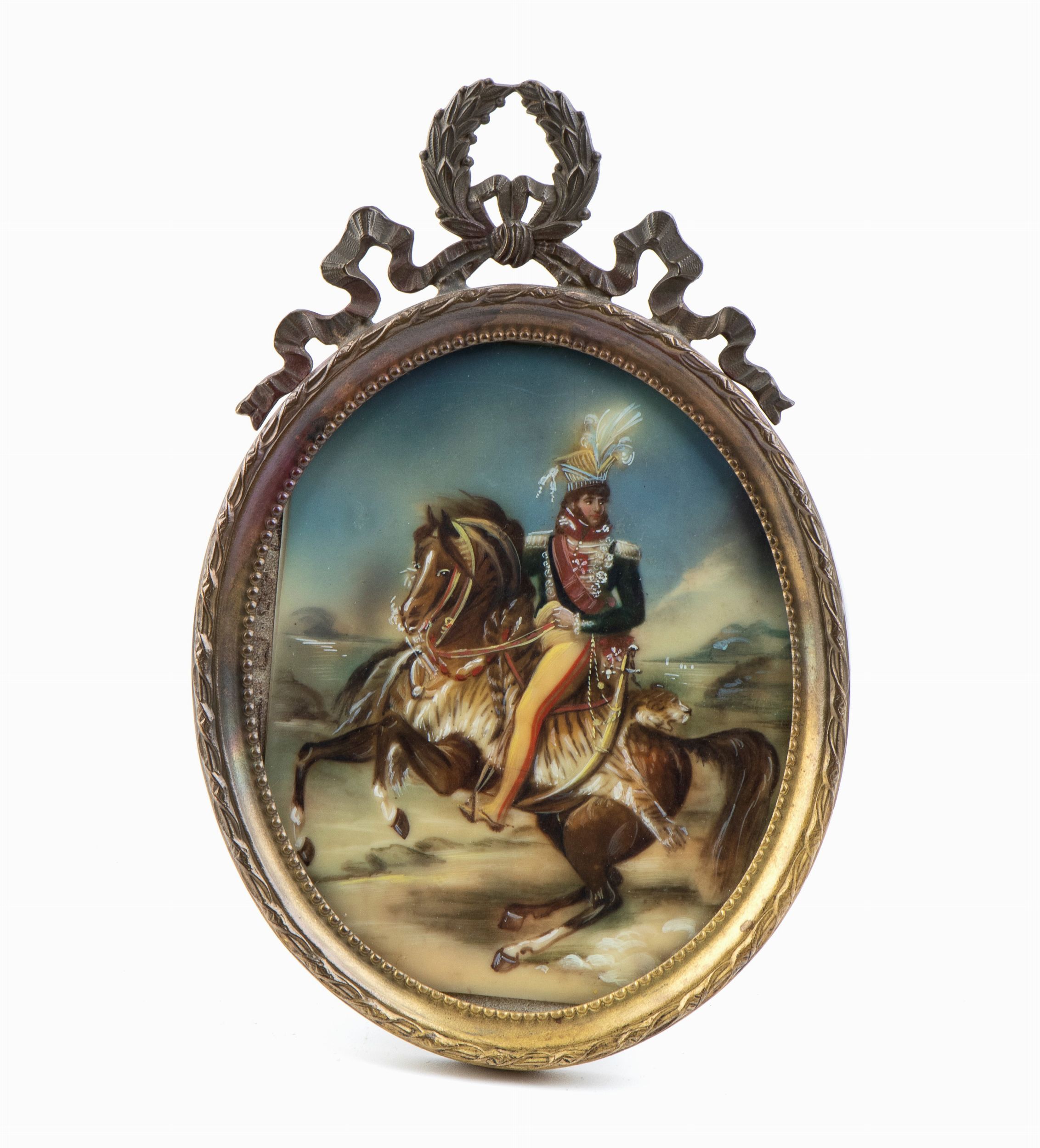 Miniatura ovale in cornice in bronzo d’epoca raffigurante Gioacchino Murat a cavallo