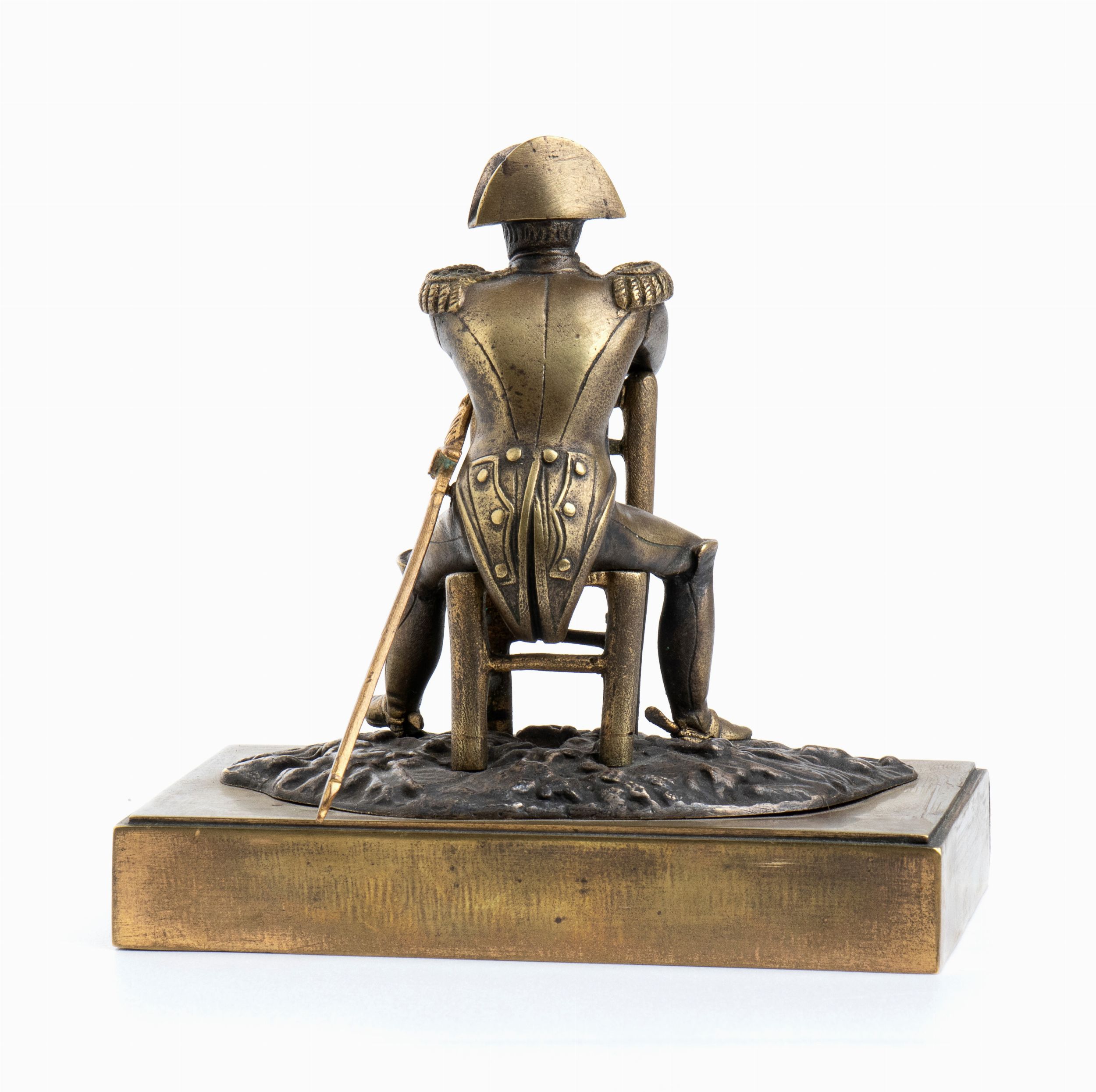 Piccola scultura in bronzo di Napoleone seduto in campo di battaglia