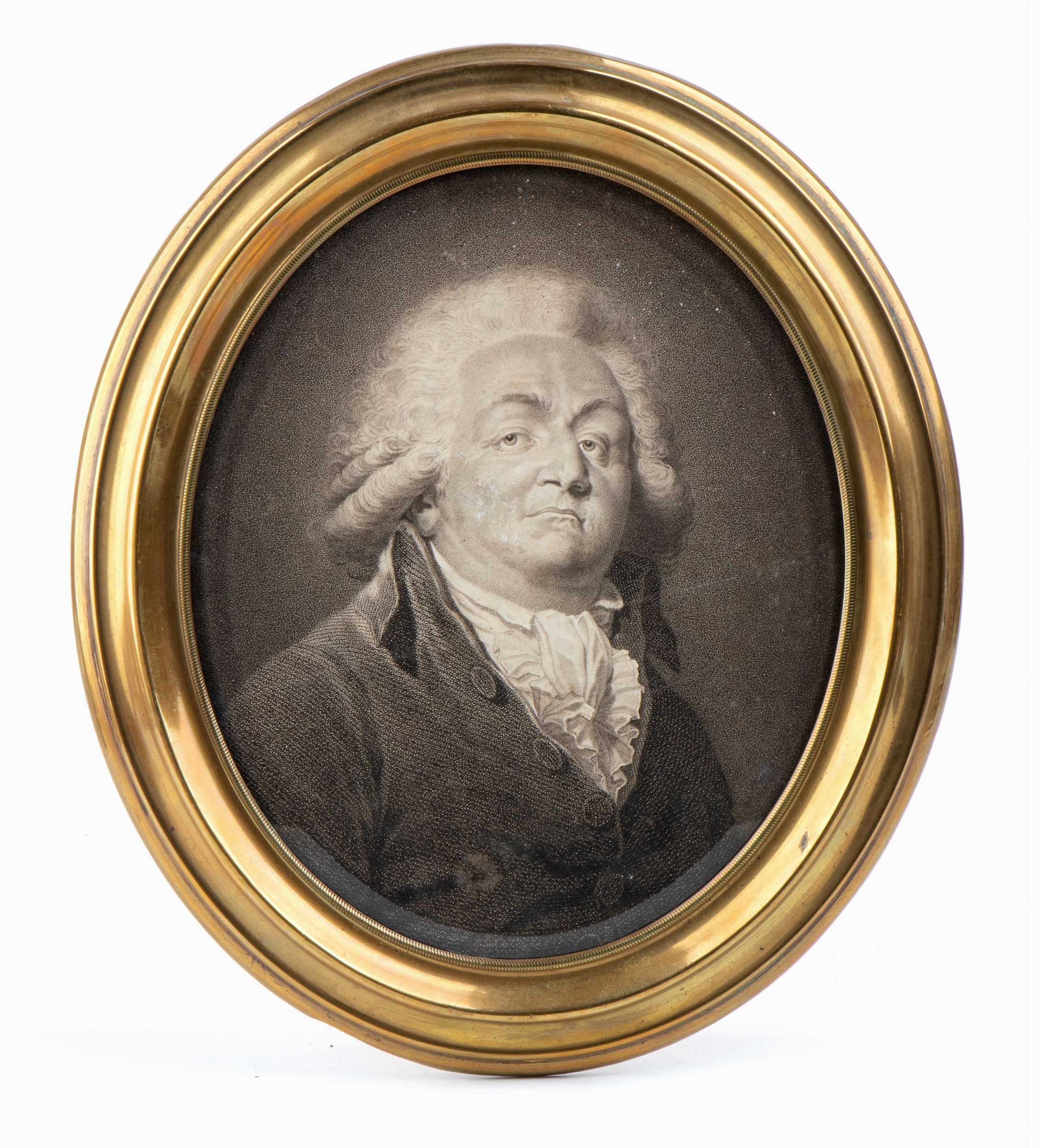 stampa in cornice raffigurante Danton, cornice coeva in metallo dorato