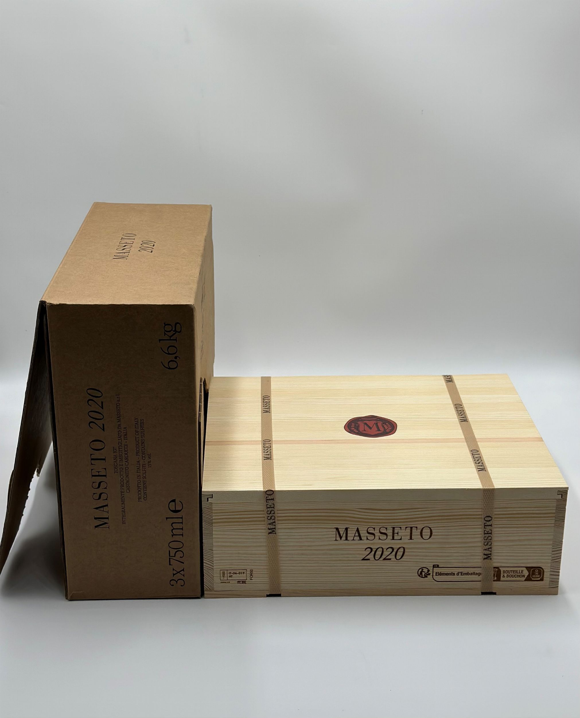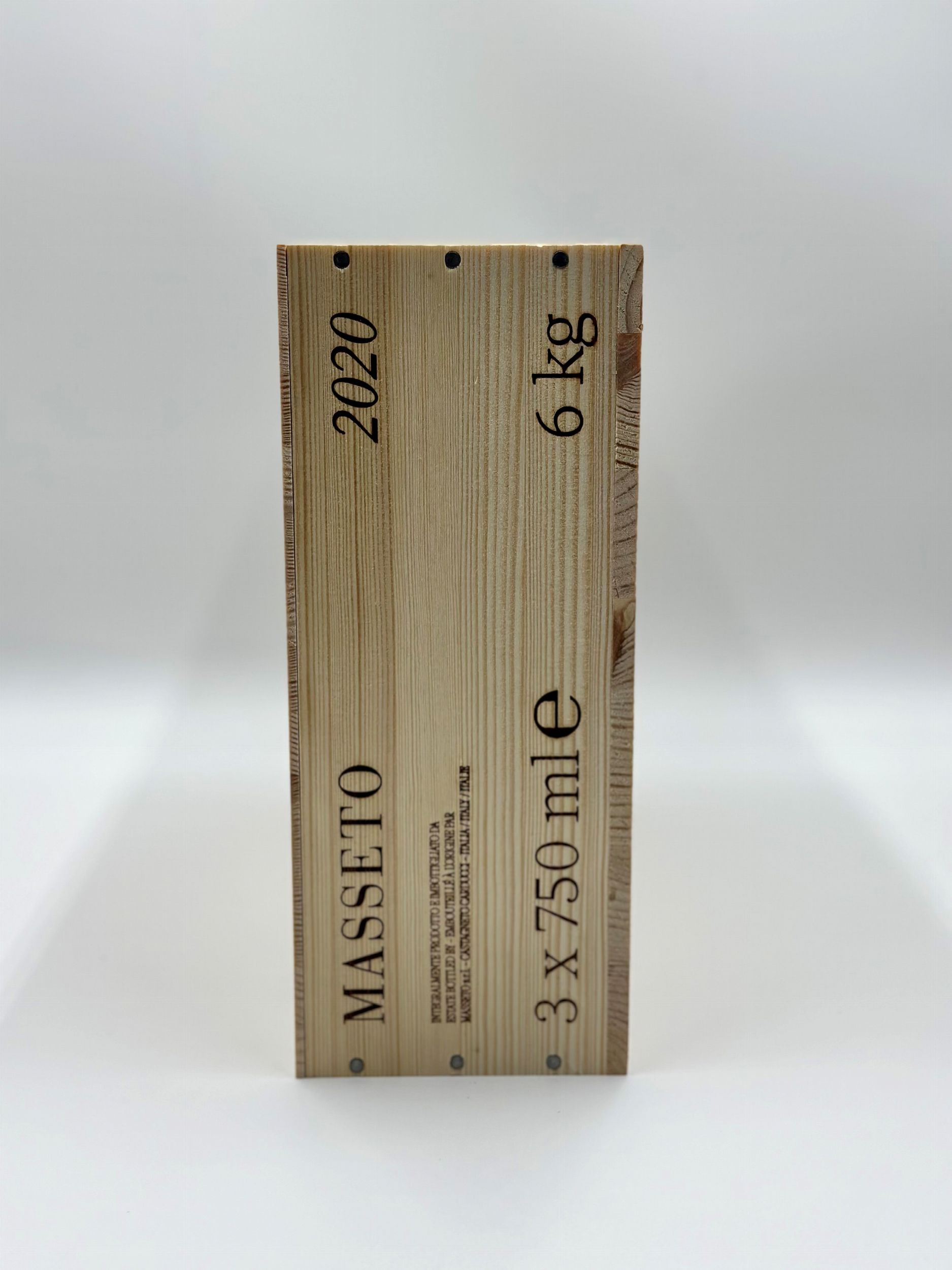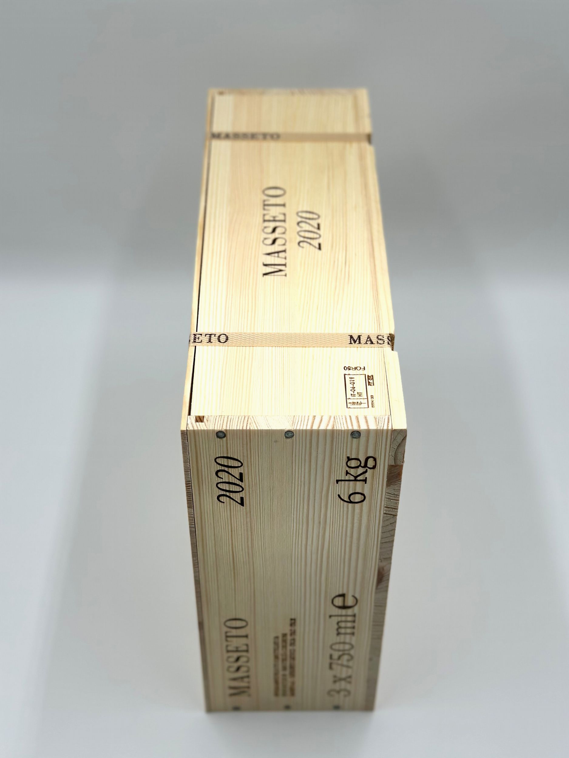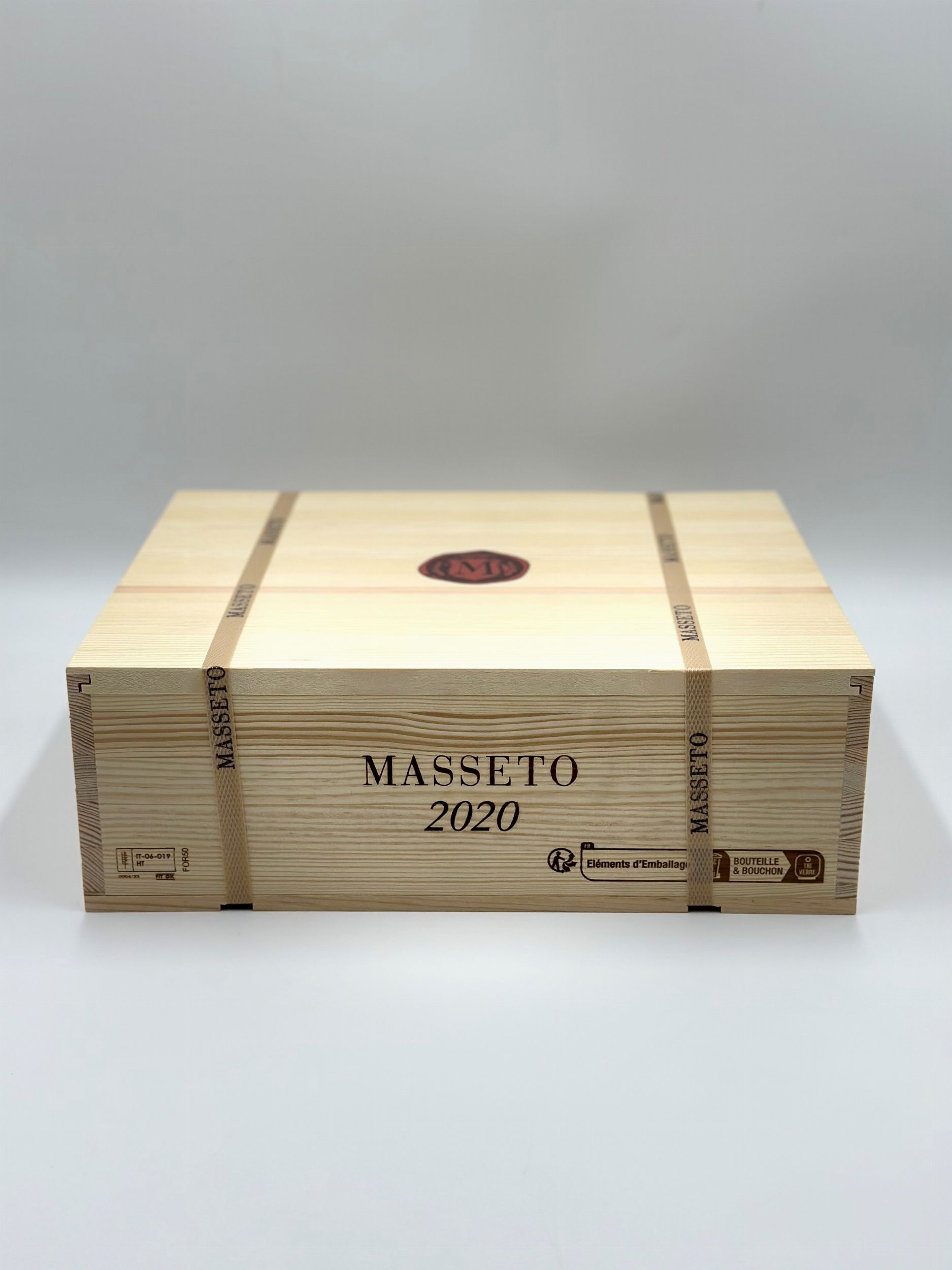 2020 Toscana, Masseto IGT - 3 bottiglie (bt), annata 2020.Livello: entro il collo (WN), livello di colmatura standard.Confezione: scatola di legno originale (OC). Condition report: etichetta e capsula in perfette condizioni.