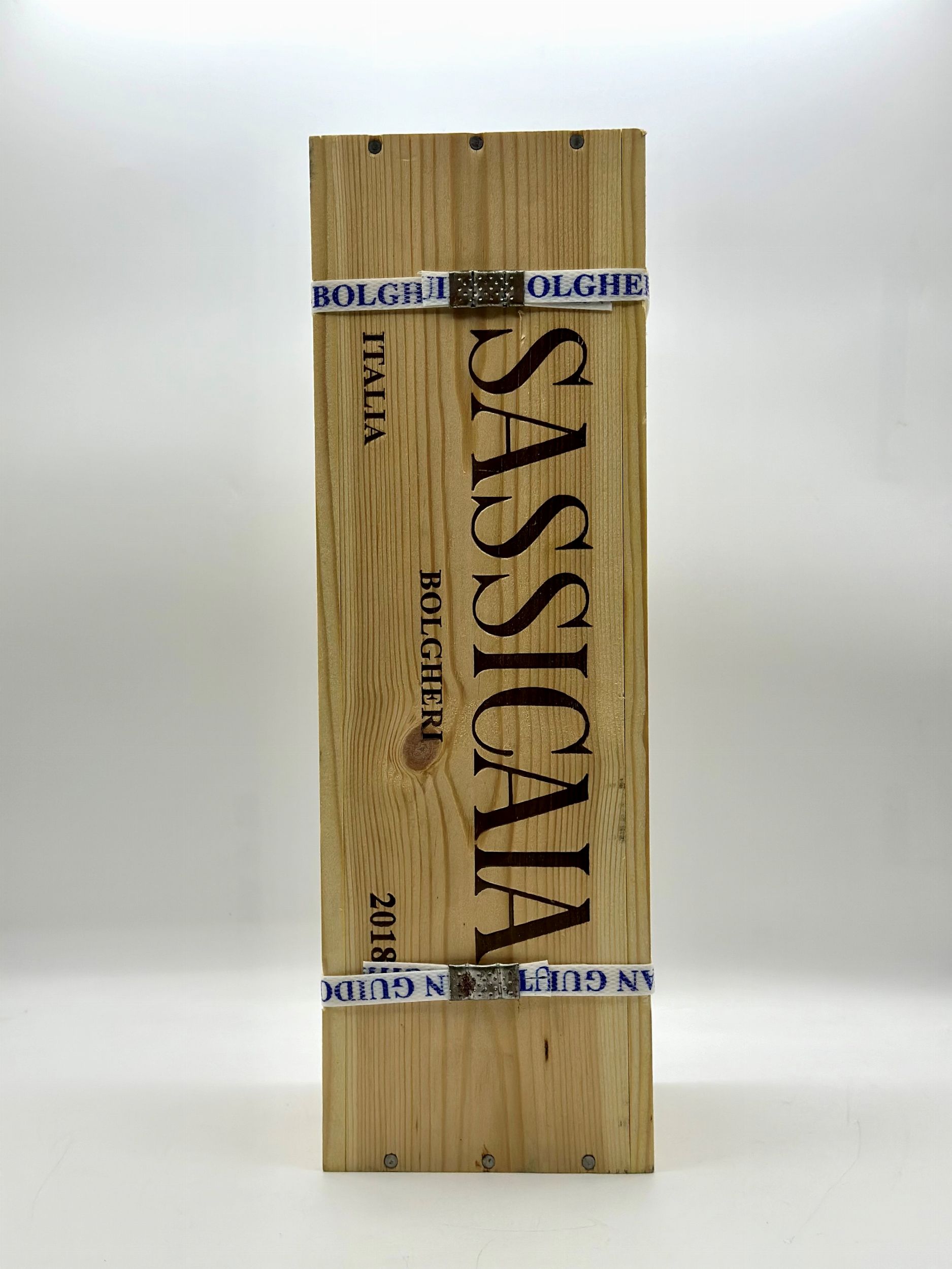 2018 Toscana, Sassicaia DOC - 1 Magnum (Mg), annata 2018.Livello: entro il collo (WN).Confezione: scatola di legno originale (OWC) regettata.Condition report: etichetta e capsula in perfette condizioni.