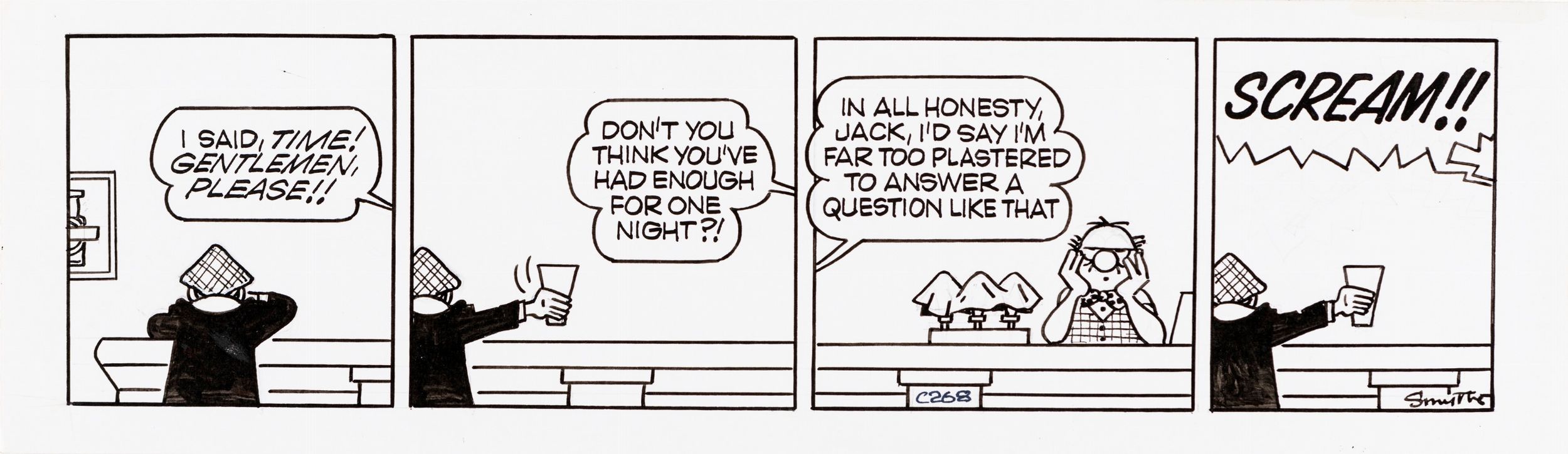 1994 Striscia giornaliera n. C 268 del 1994 per Andy Capp, realizzata da Smythe per le pagine del The Daily Mirror. Firmata.