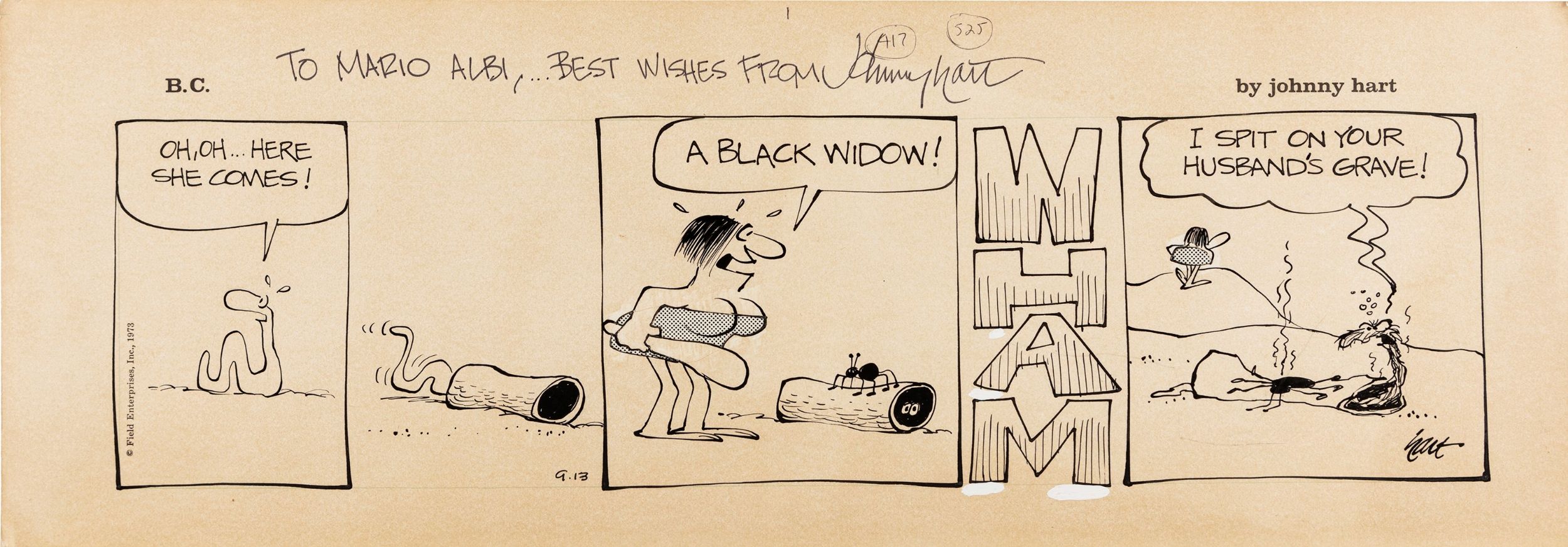 1973 Striscia giornaliera del 13/09/1973 per B.C.. Firmata, datata e dedicata.