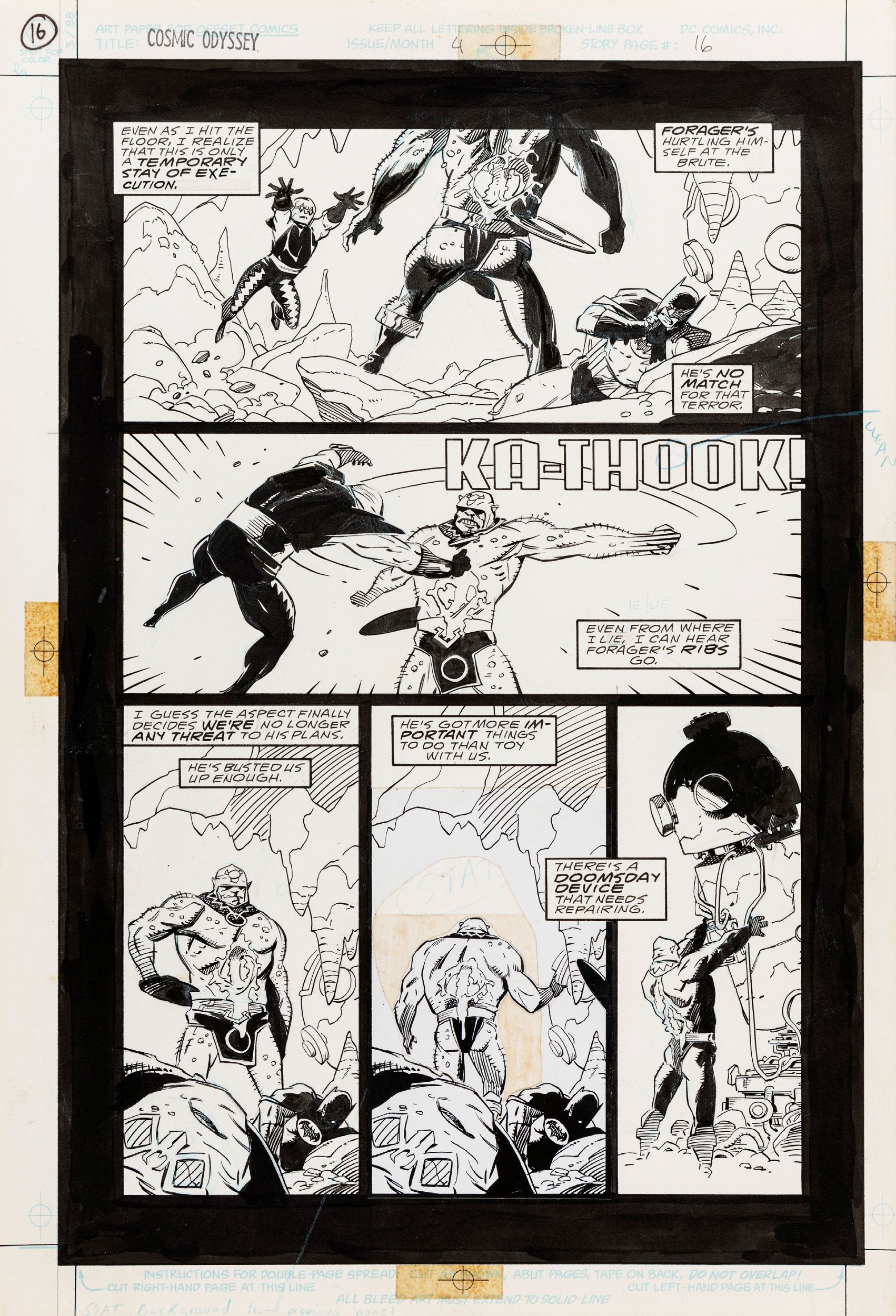 1989 Tavola originale realizzata da Mignola per Death quarto capitolo della miniserie Cosmic Odyssey, edita a pag. 16 dalla DC nel 1989. Presenza di fotocopie nella quarta vignetta.