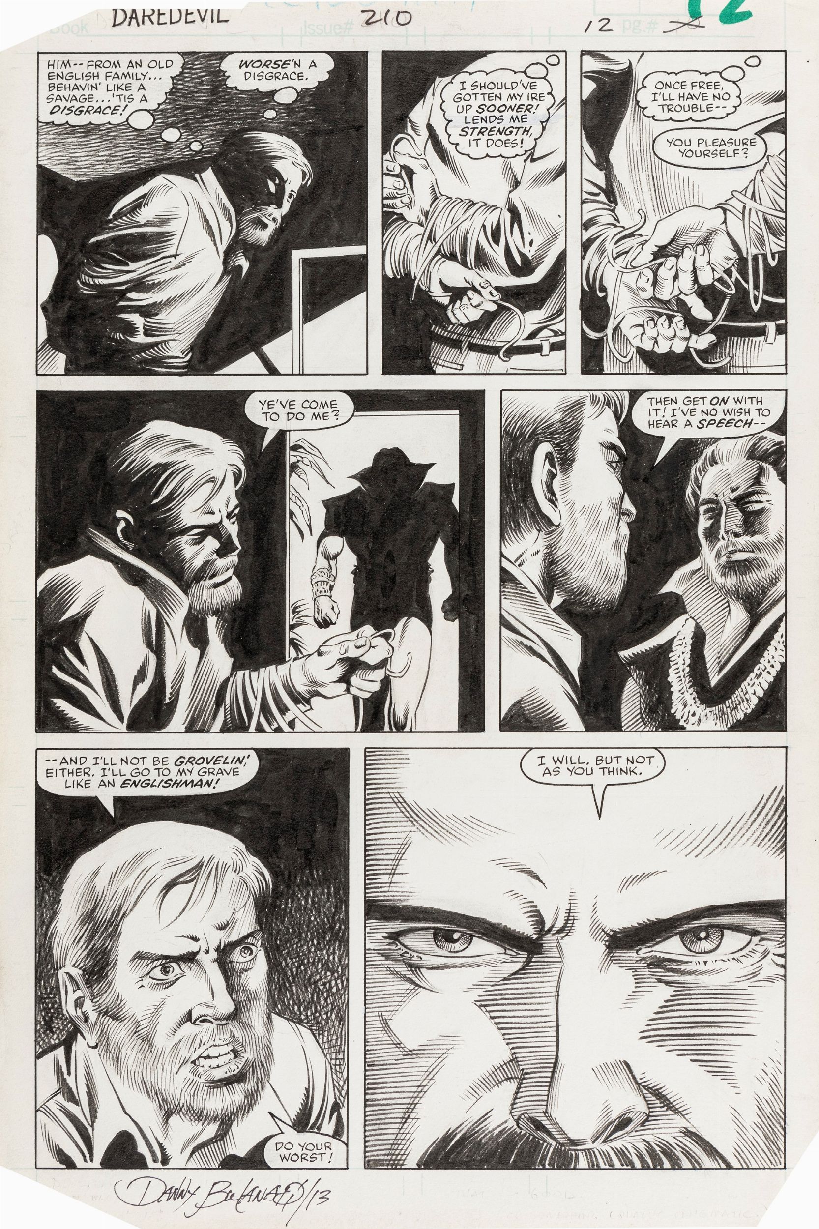 1984 Tavola originale realizzata da Mazzucchelli per Survivor, edita su Daredevil n. 210 a pag. 12 dalla Marvel nel 1984. Chine di Danny Bulanadi. Firmata da Bulanadi.