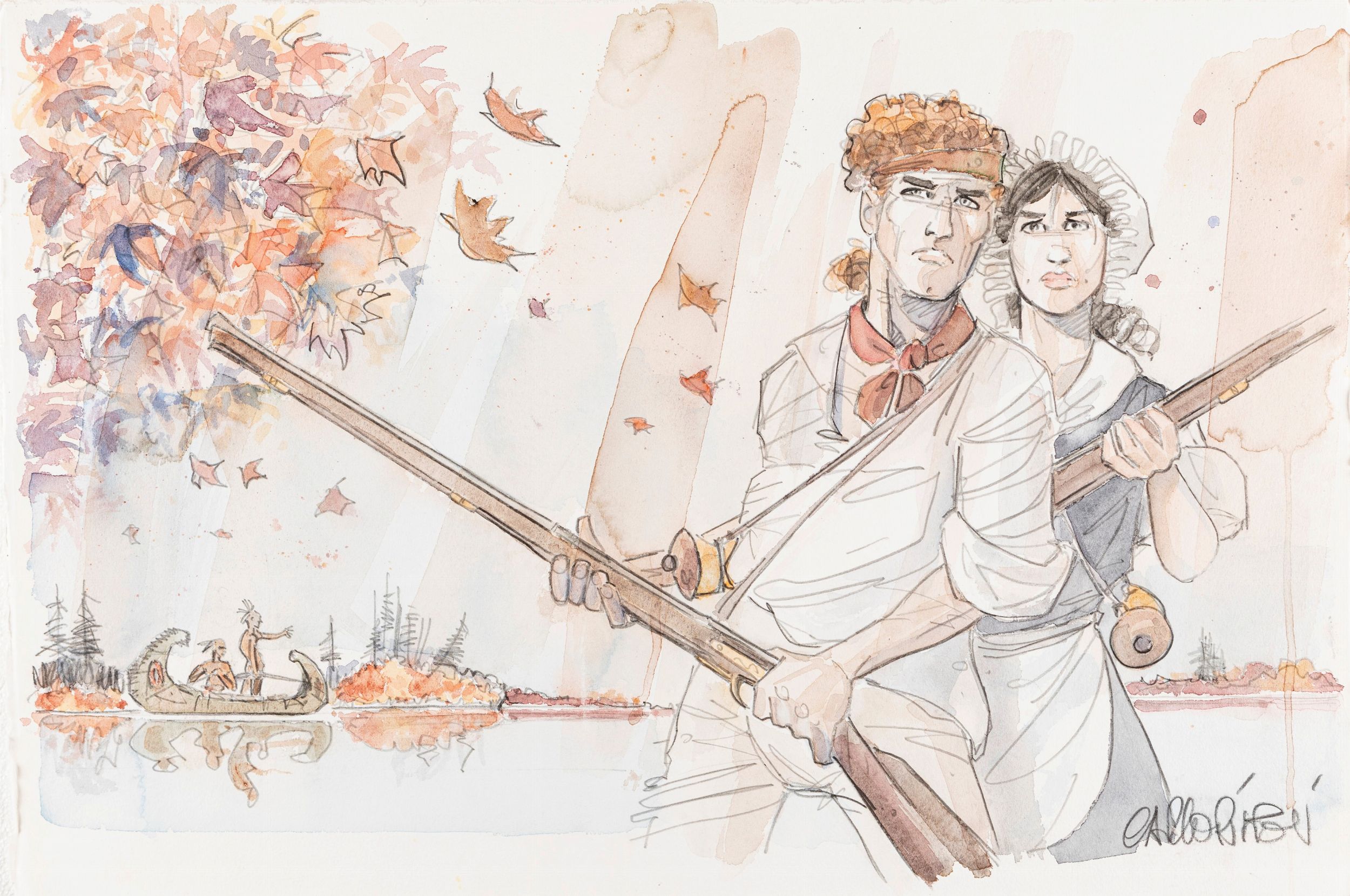 2016 Originale di copertina (e quarta di copertina) realizzato da Rispoli per Deerfield 1704: Sangue sul Lago Otsego, edita dalle Edizioni Segni d’Autore nel 2016. Firmata.