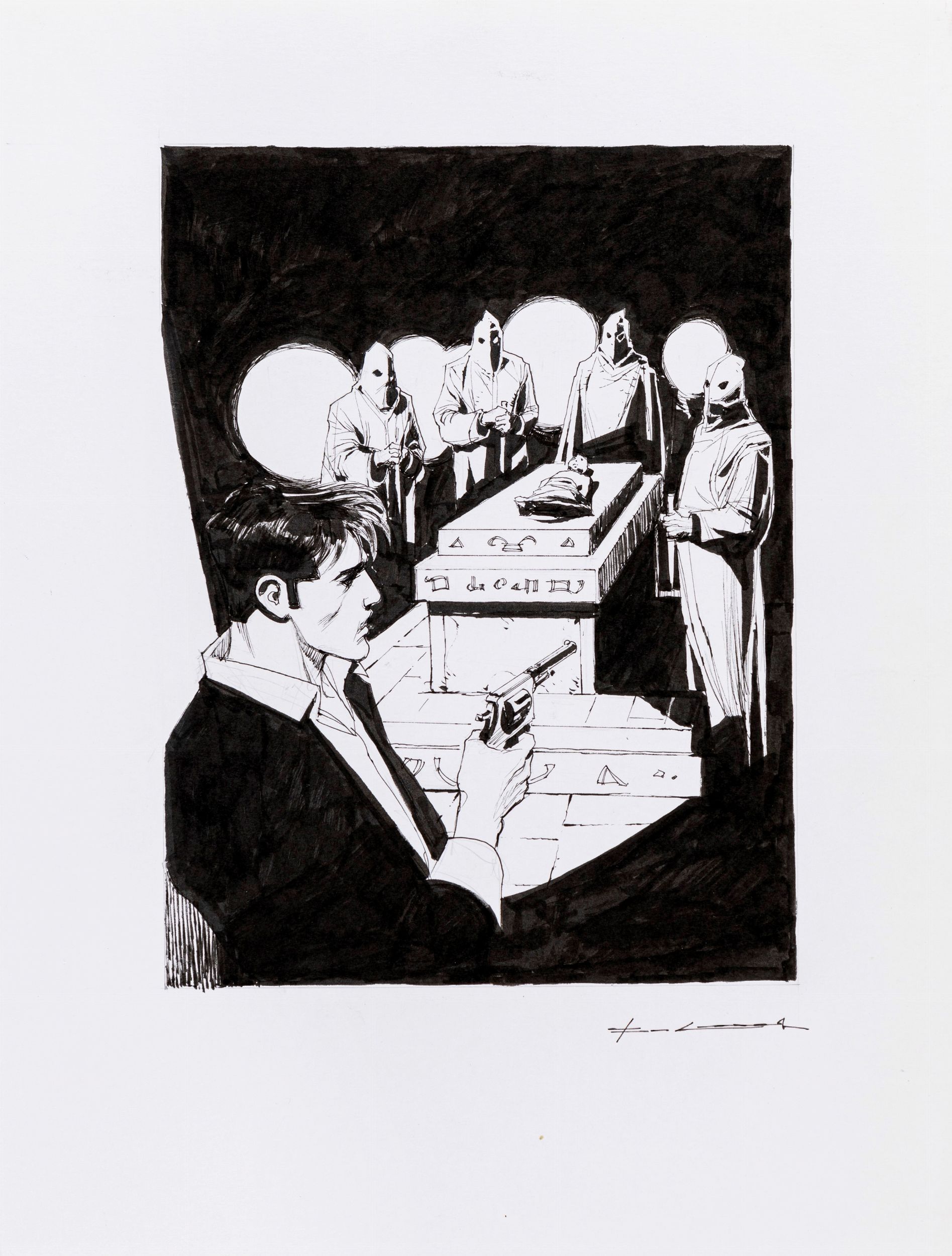 matita, china e acquerello su cartoncino, 24 x 33 cm 2015 Originale di copertina realizzato da Roi per Dylan Dog Grande Ristampa n. 52 edito dalla Bonelli nel 2015. Tra le più affascinanti copertine realizzate da Roi, divenuto nel 2006 copertinista ufficiale di questa nuova ristampa. Firmato.