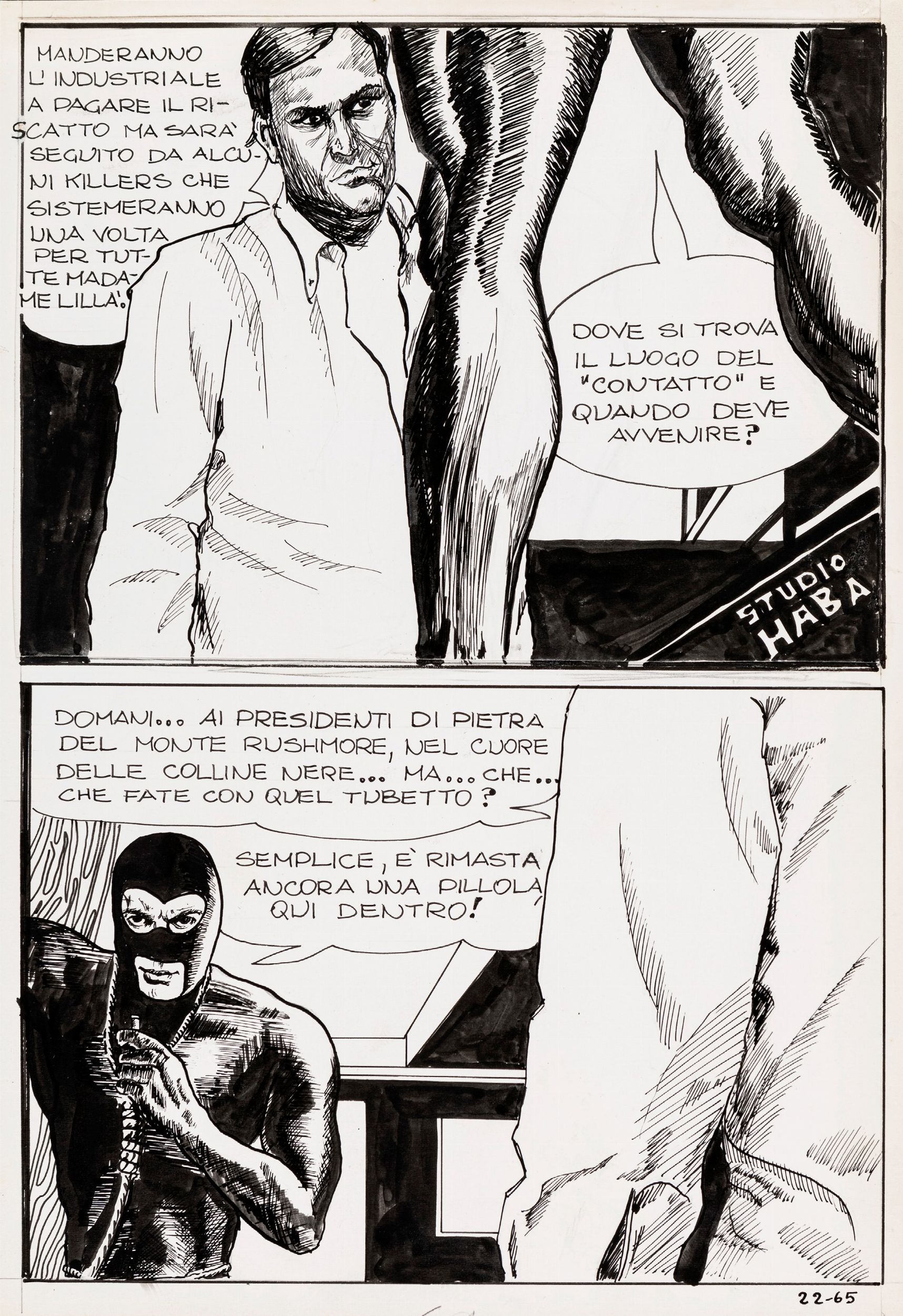 1970 Tavola originale realizzata da Manara per Al profumo di Lillà, edita su Genius n. 22 a pag. 65 dalla Furio Viano Editore nel 1970. L'opera prima di un giovanissimo Manara che approda al mondo del fumetto con questo erotico-poliziesco nato come emulo di