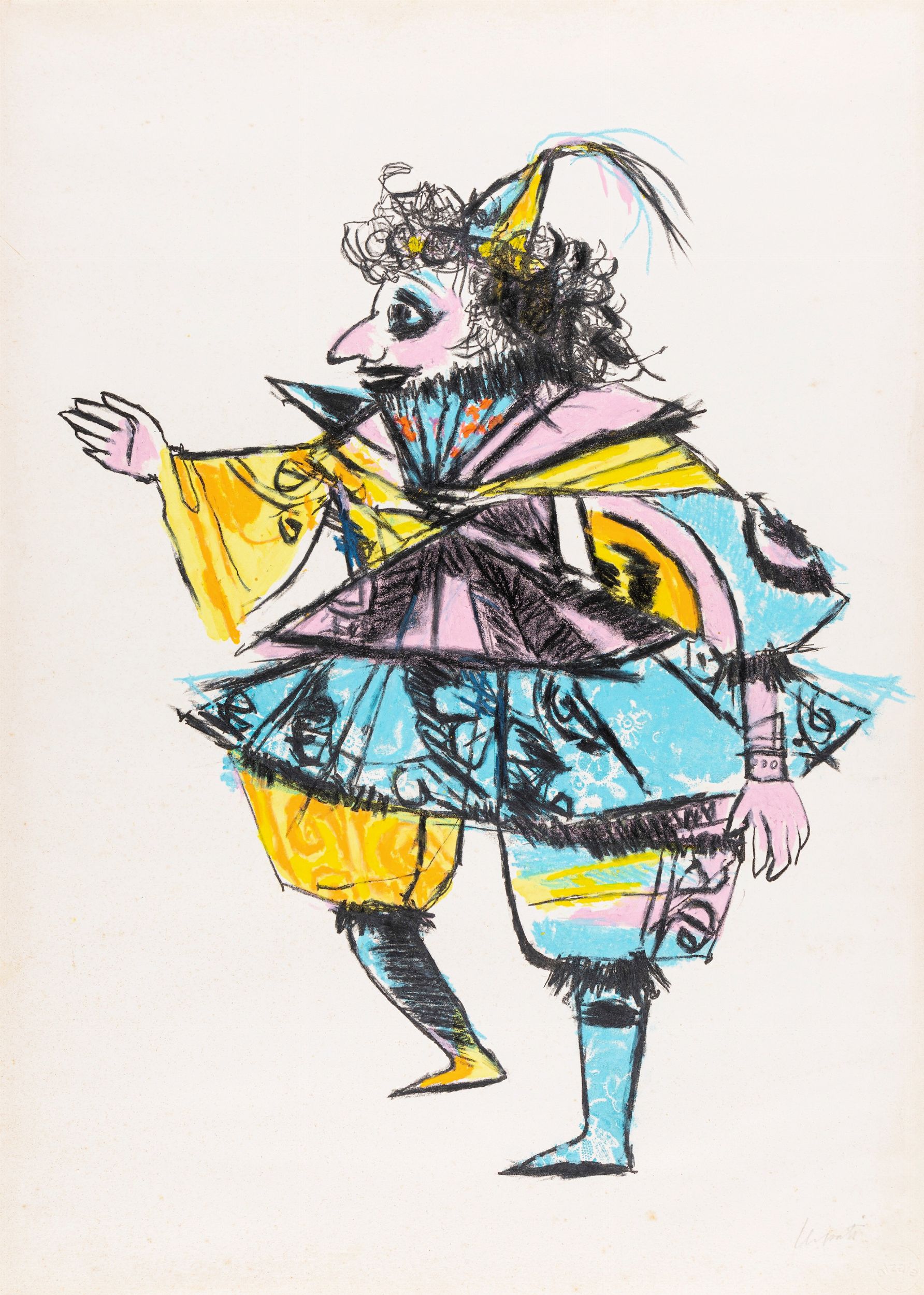anni 60 Figurino teatrale realizzato da Luzzati nei primi anni '60. Firmato.