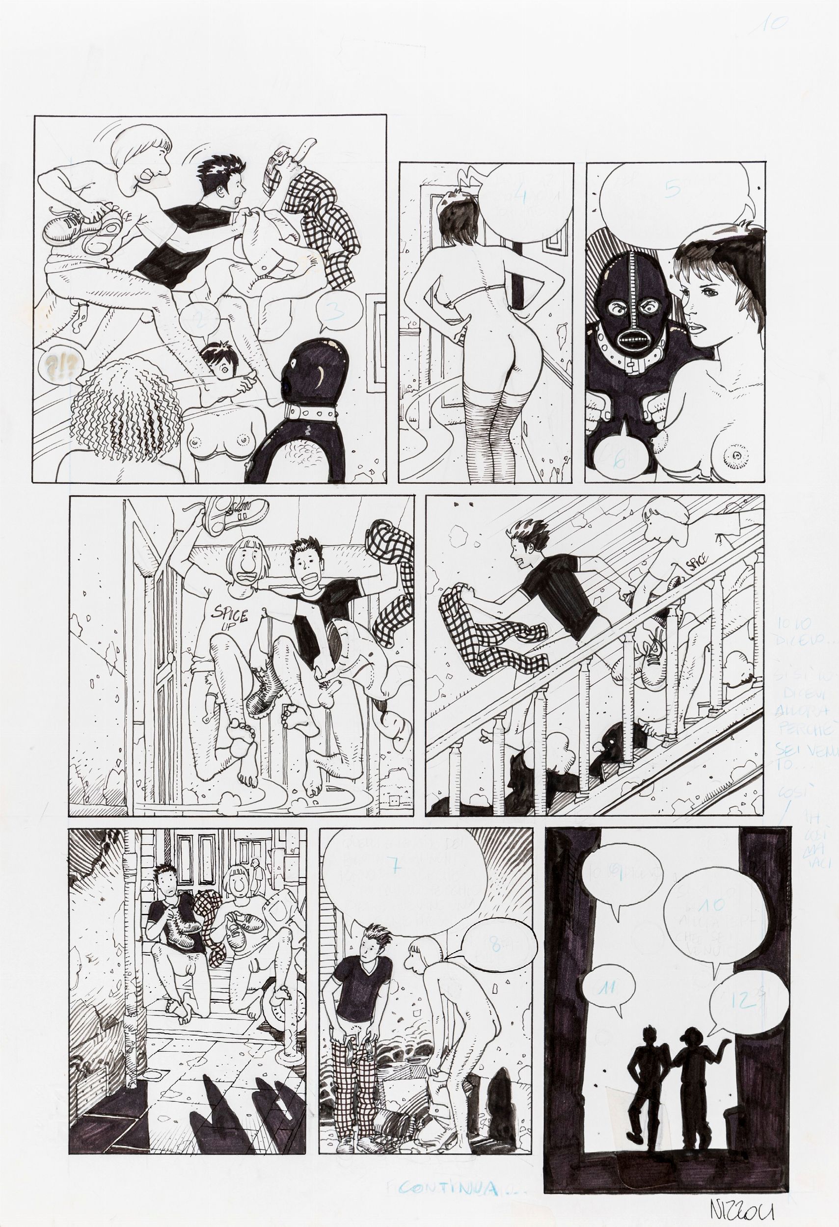 1996 Tavola originale realizzata da Nizzoli per Il vizioso mondo di Keto, edita per la prima volta a pag. 10 sulla rivista erotica Selen nel 1996. Firmata.