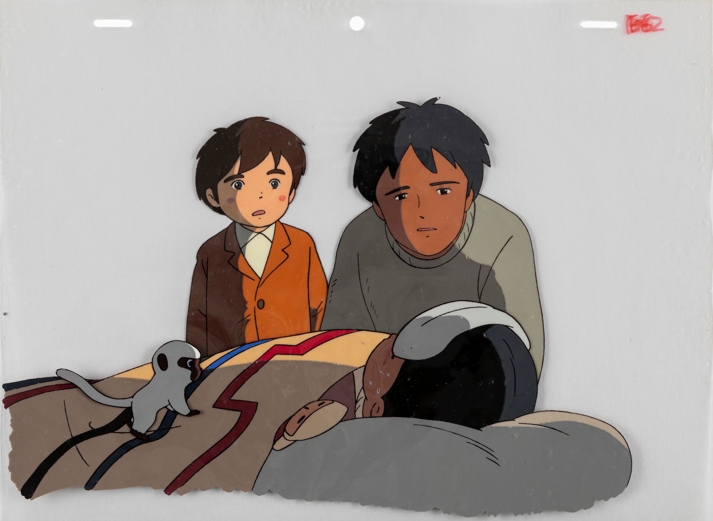 tempera su rodovetro e matita su carta, 30 x 22 cm 1976 Cel originale (4 fogli) realizzata dalla Nippon Animation per il celebre anime giapponese Marco - Dagli Appennini alle Ande, andato in onda nel 1976. Tratto dal romanzo Cuore di Edmondo De Amicis, venne diretto da Isao Takahata, mentre Hayao Miyazaki cuṛ il layout della serie. Si allegano i douga corrispondenti.