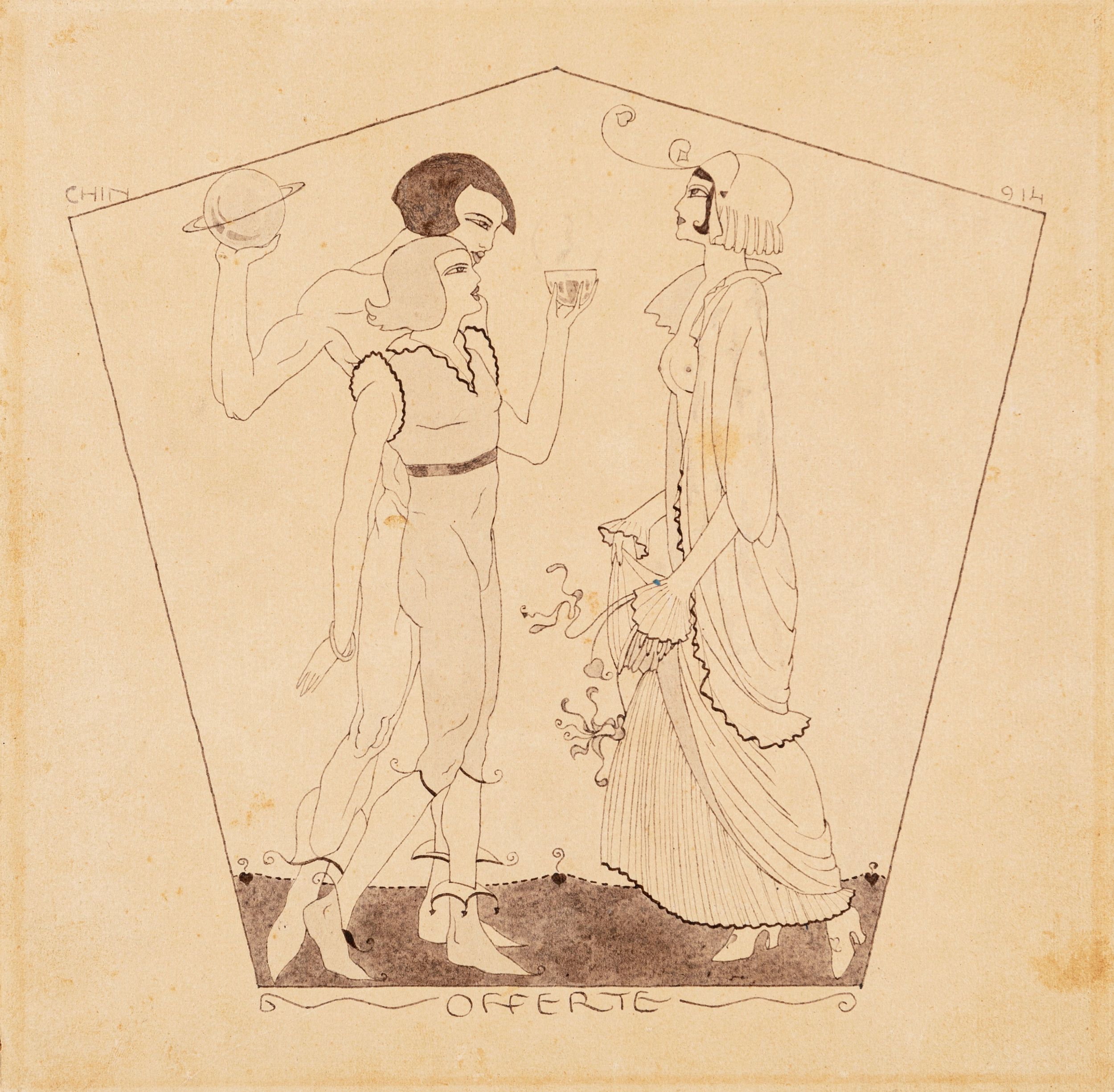 1914 Illustrazione originale realizzata da Chin, pubblicata su Arti decorative 1895-1930 vol. 3 a pag. 131 da Banca Emiliana nel 1985. Firmata e datata.