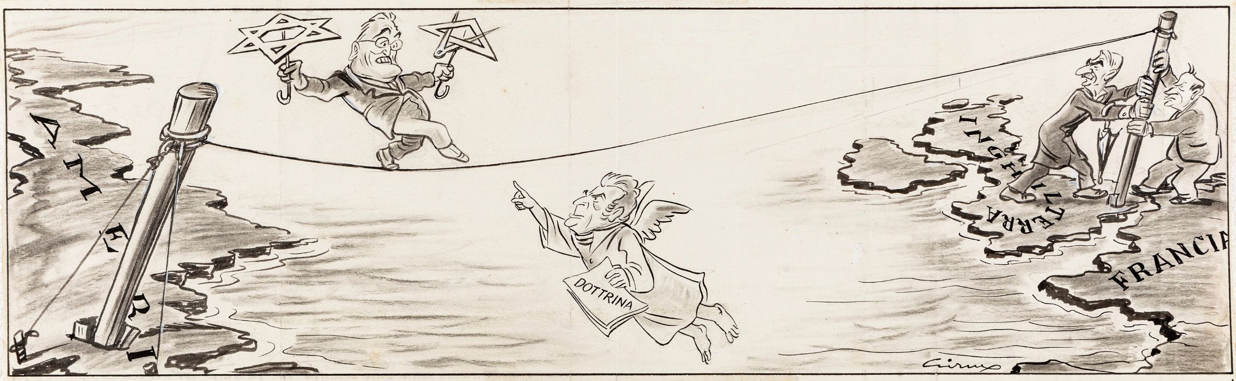 Girus (Giuseppe Russo) : Roosevelt in bilico sulla dottrina di Monroe  - Asta Fumetti: Tavole e Illustrazioni Originali - Associazione Nazionale - Case d'Asta italiane
