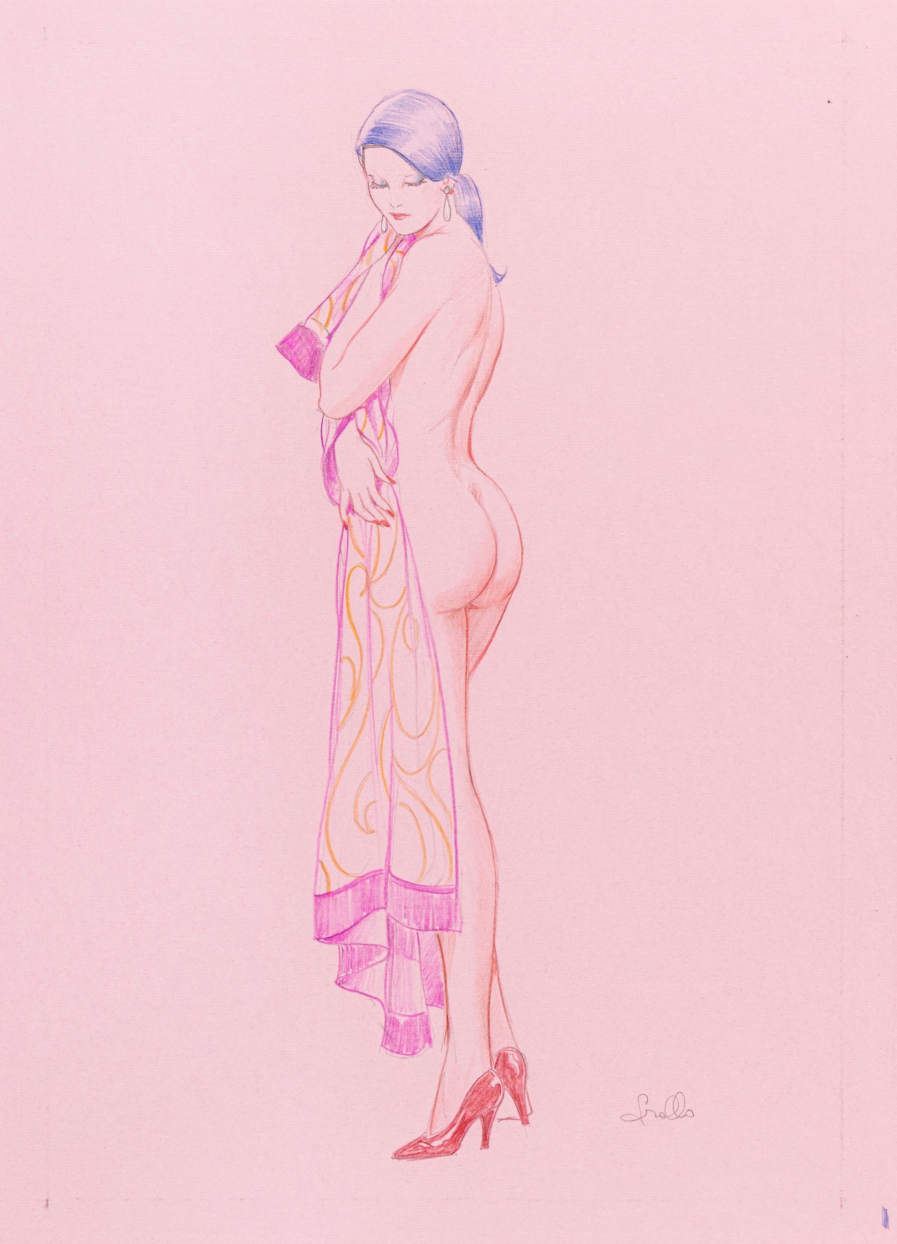 anni 90 Illustrazione originale realizzata da Frollo durante gli anni '90, una raffinata e seducente visione del maestro veneziano dell'eros. Firmata.