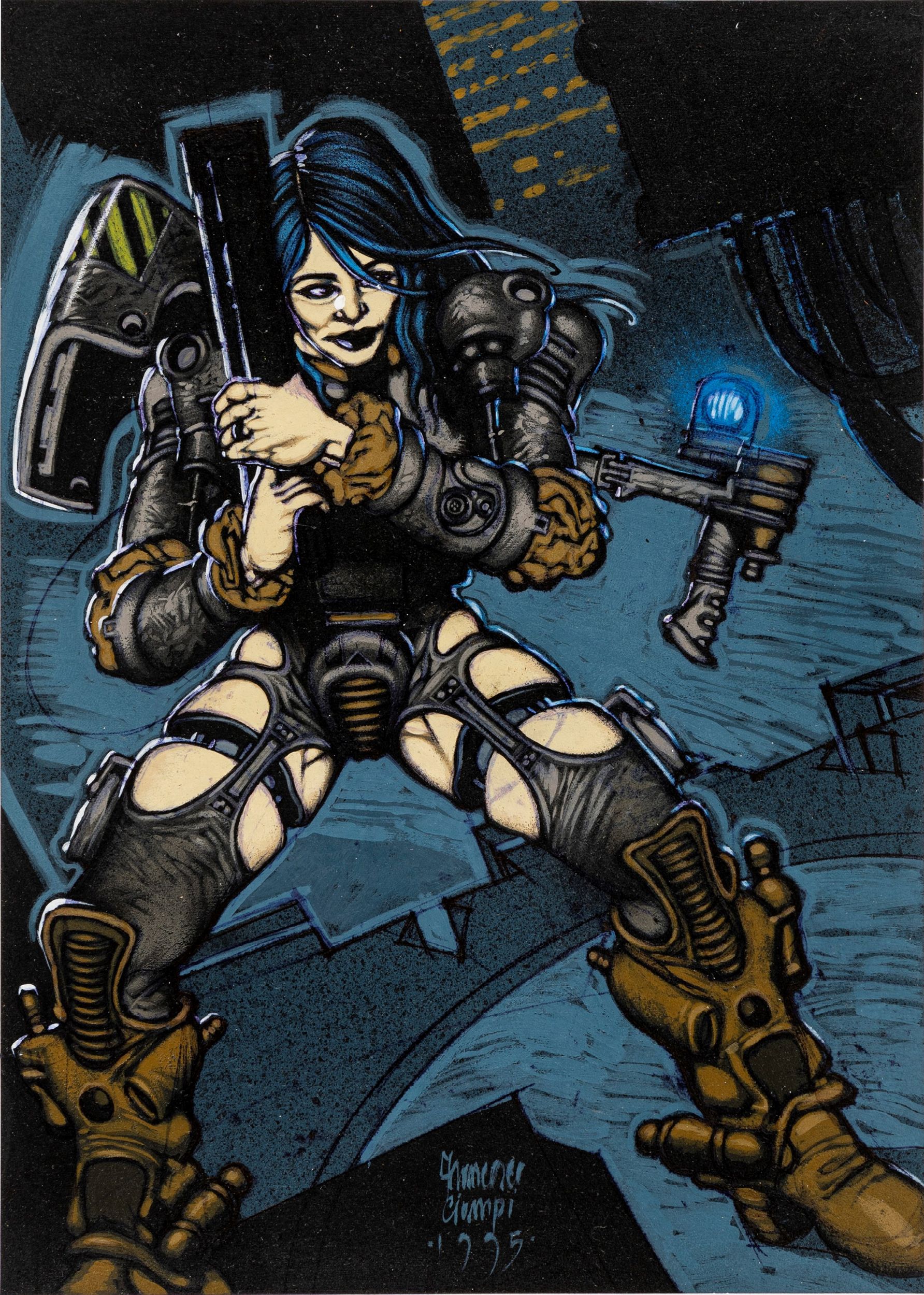 1995 Illustrazione originale realizzata da Ciampi durante la sua collaborazione a riviste come Blue e Heavy Metal. Firmata e datata.