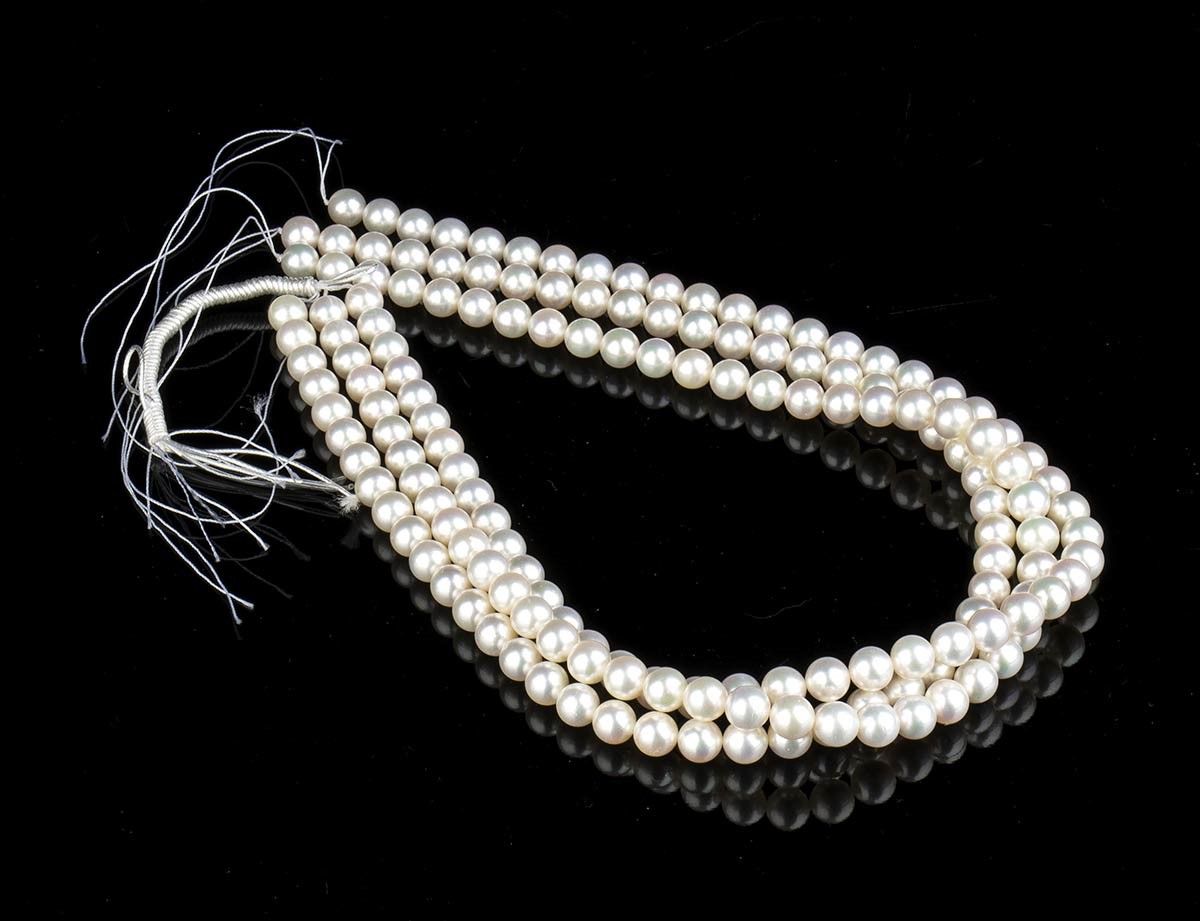 3 fili slegati di perle coltivate d'acqua salata