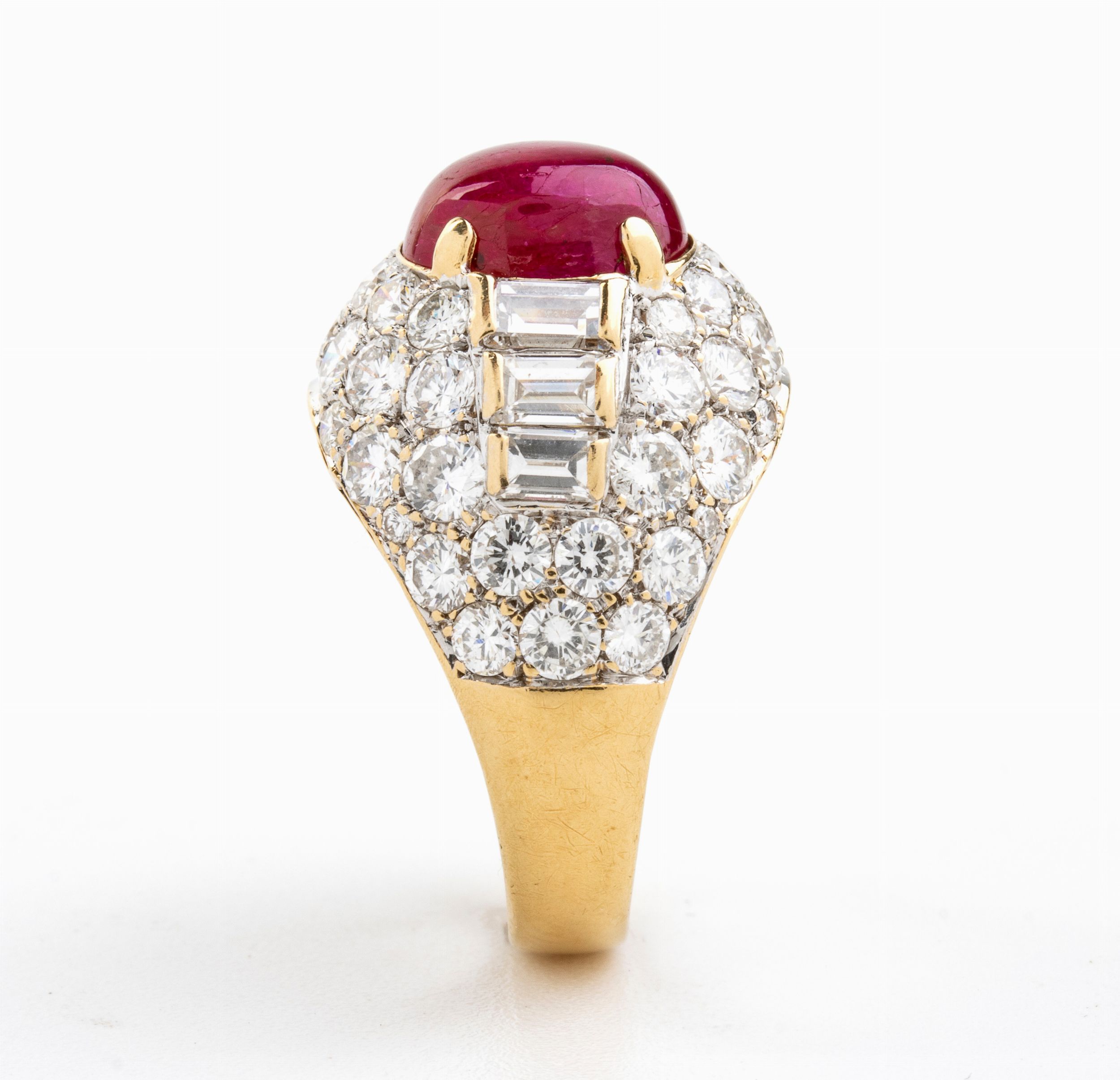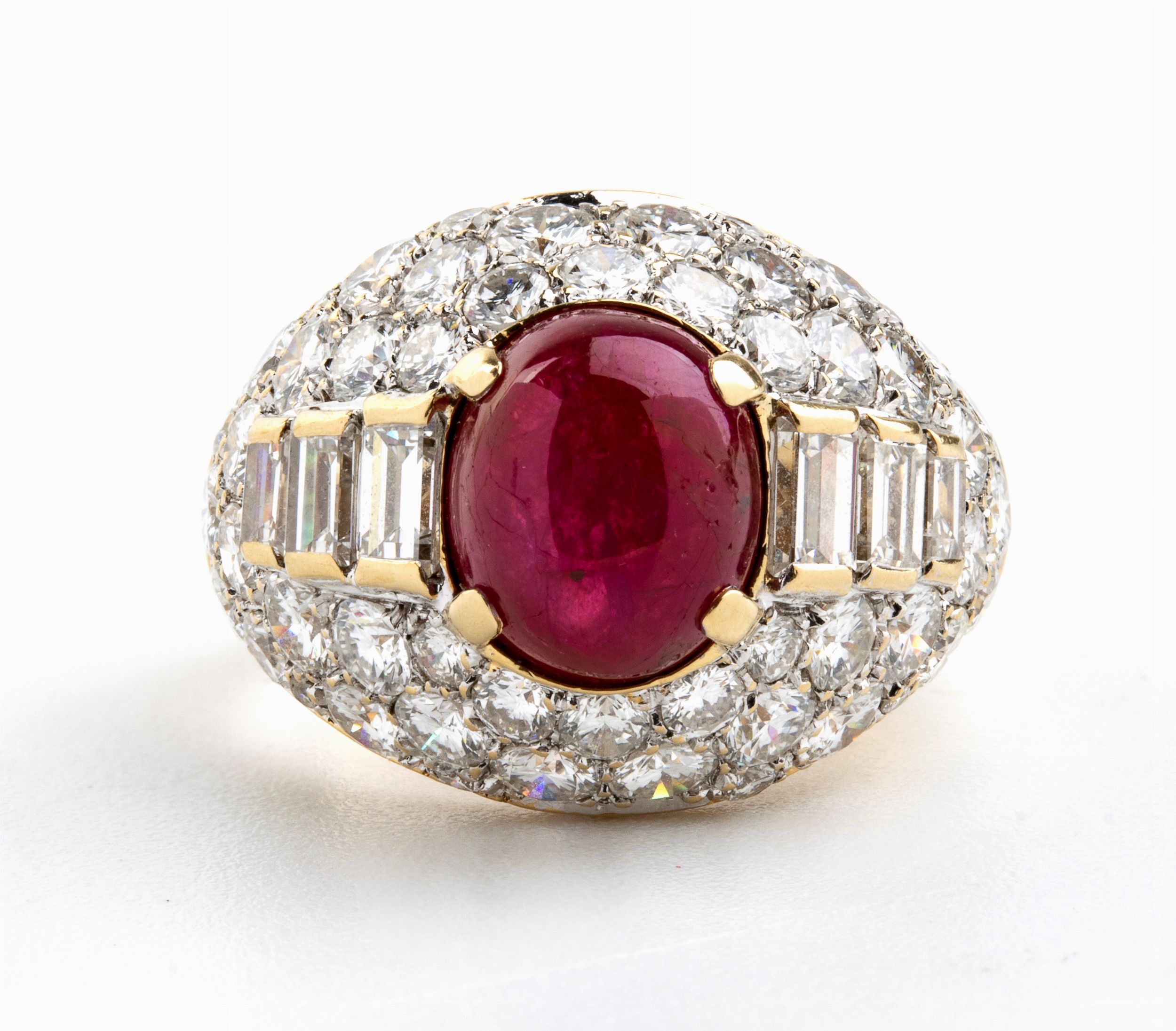 modellato come una fascia, incastonato con rubino contornato da diamanti.