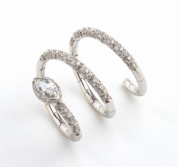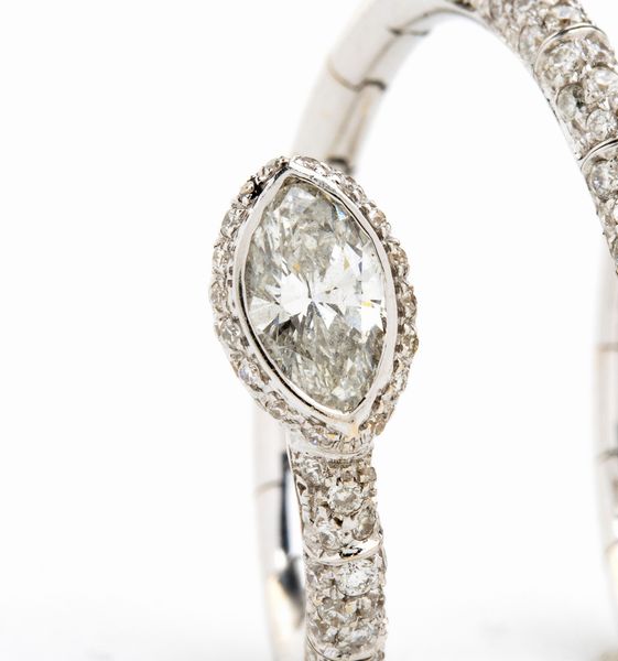 oro bianco 18k, modellato a forma di serpente, impreziosito da un pavé di diamanti, testa in diamante a navetta.