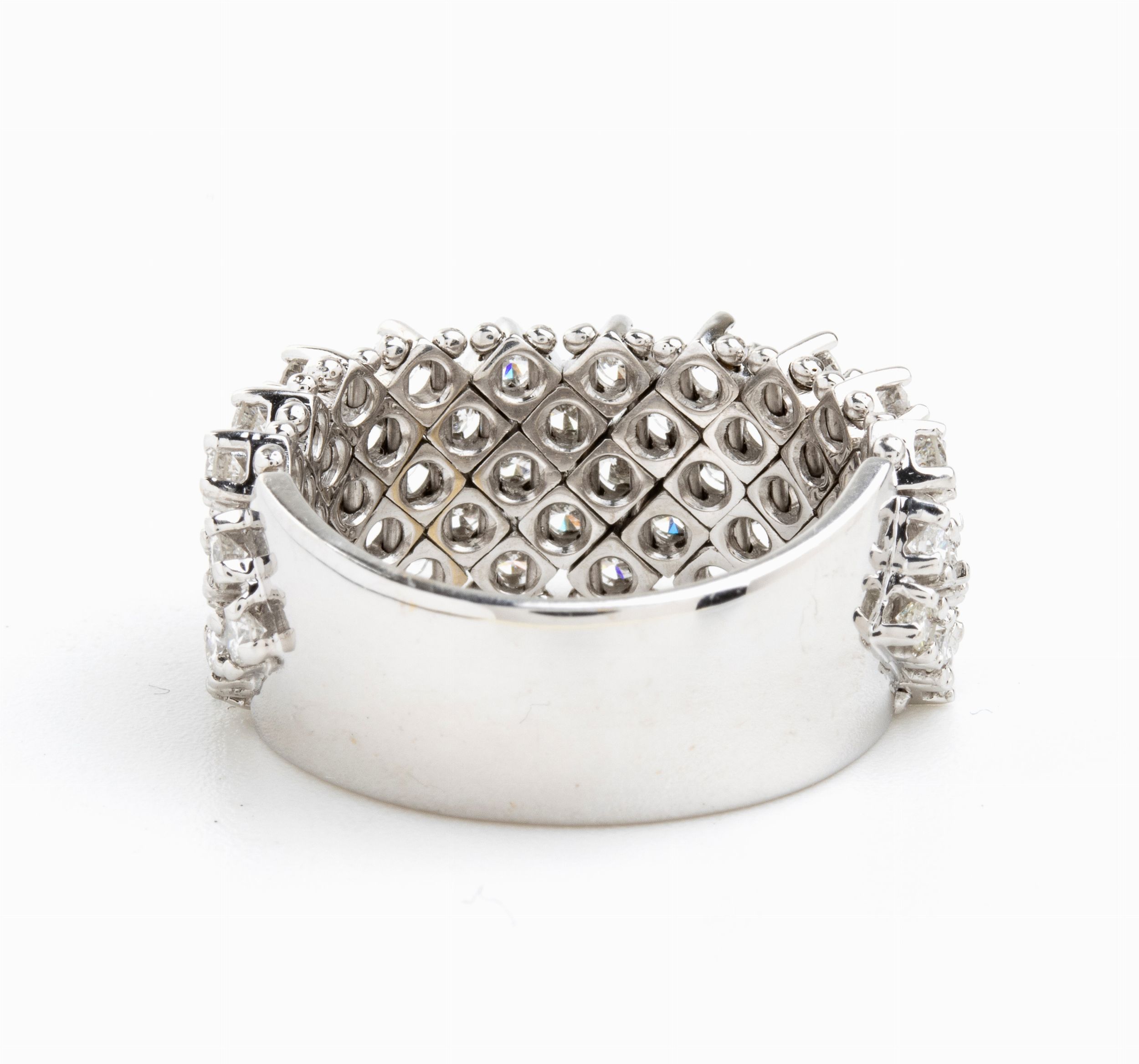 montatura a fascia rigida impreziosita da un pavé di diamanti su una montatura flessibile.
