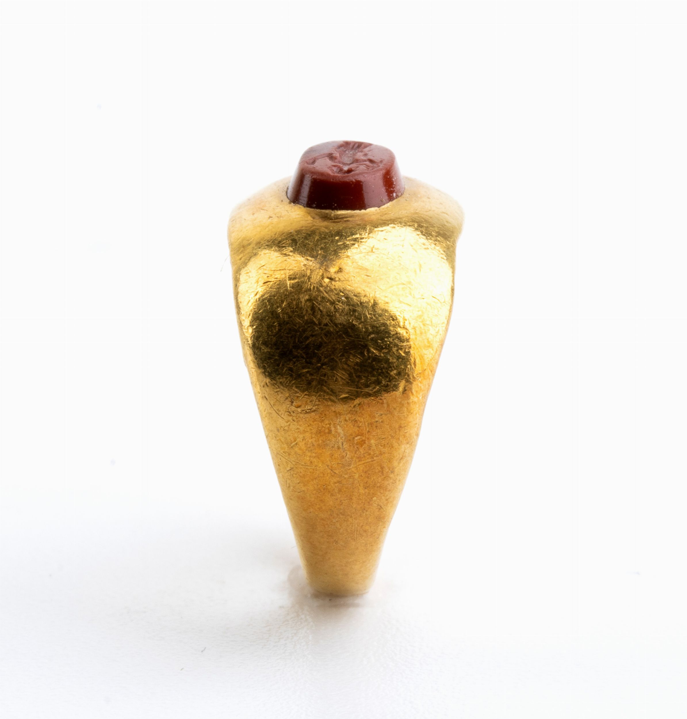 Anello stile archeologico in oro incastonato con diaspro rosso