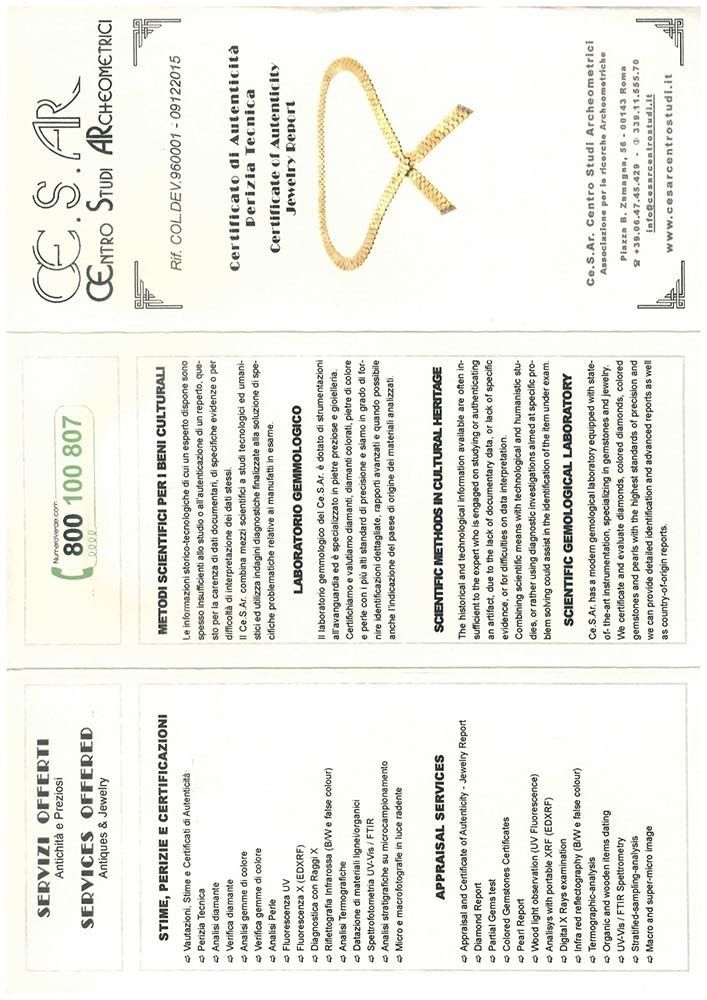 in oro giallo 18k formata da una serie di esagoni uniti tra loro per formare un disegno a nido d'ape. La sezione centrale ad X, removibile, è decorata con 10 Diamanti di forma rotonda taglio huit hui 0,30 ct circa, colore H, purezza VS. Doppia chiusura a linguetta. Punzonata 750 e 18K.