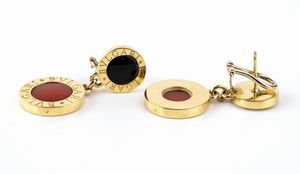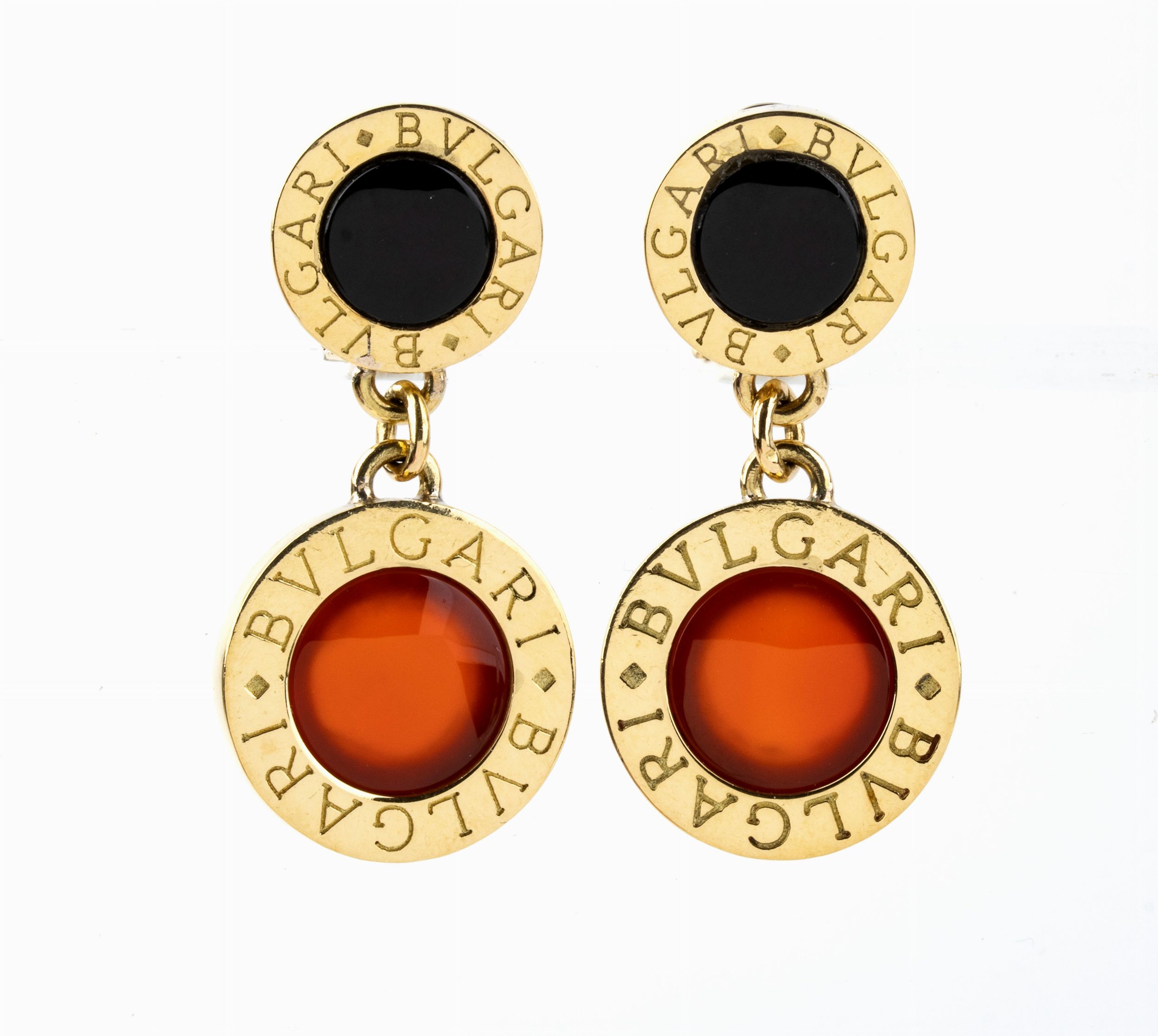 in oro giallo 18k con onice nera e corniola. Firmato BULGARI.Punzonato 750. Dimensioni 4 x 1,8 cm. Peso complessivo 26,2 gr.Stato di conservazione: ***** eccellente.