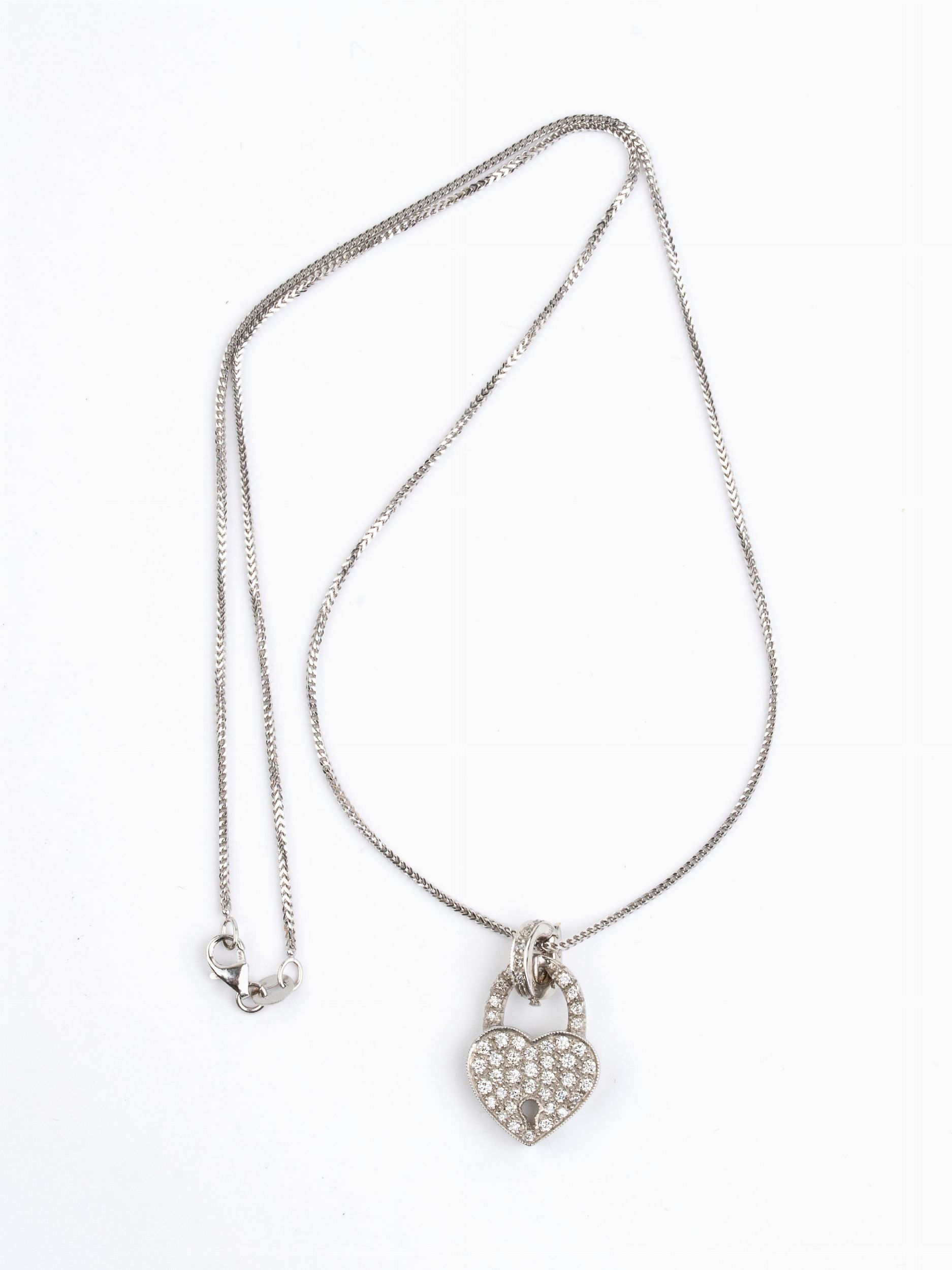 pendente raffigurante un lucchetto a forma di cuore in pavé di diamanti.