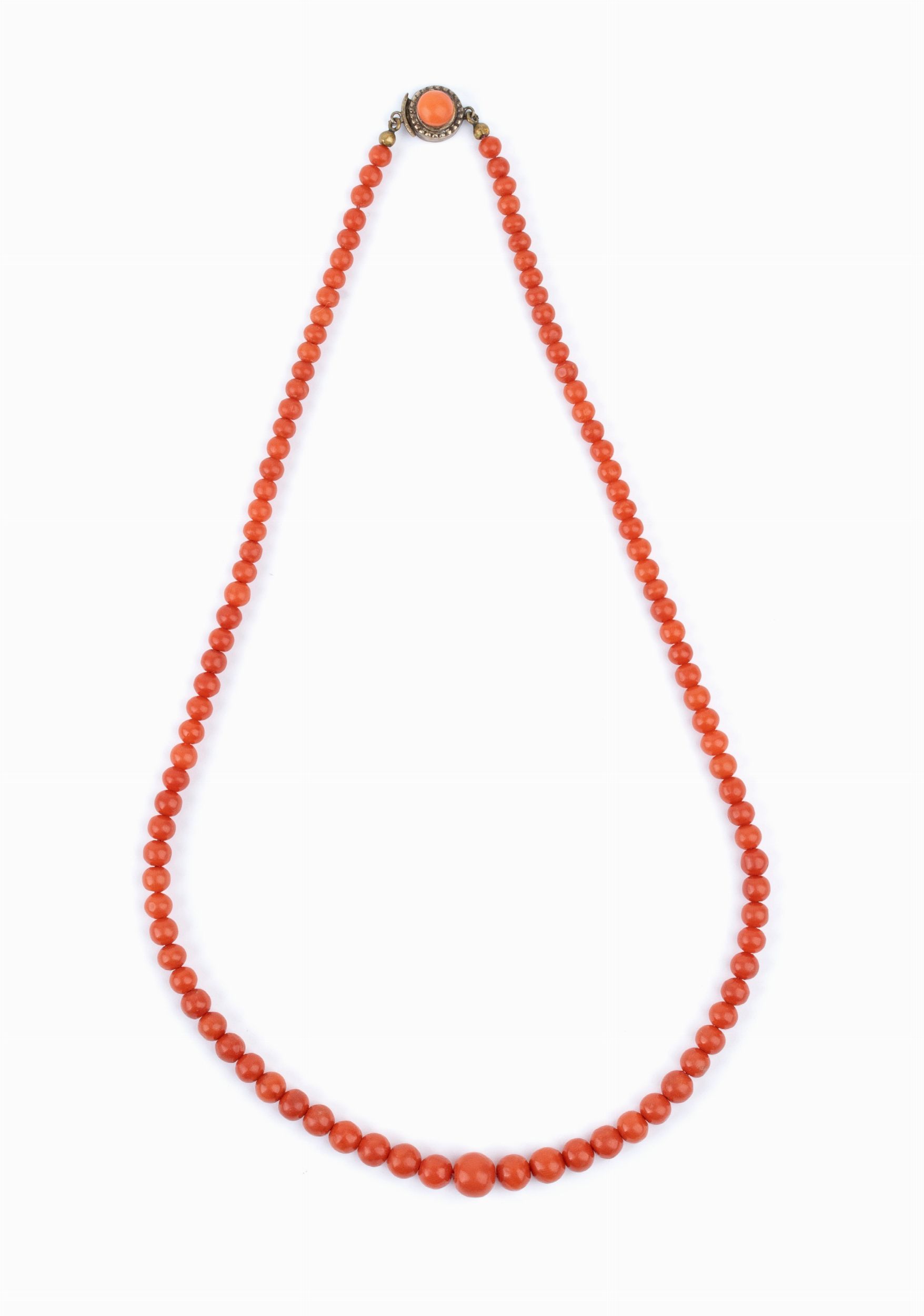 ad un filo di sfere di corallo Mediterraneo (corallium rubrum) disposte in gradazione.