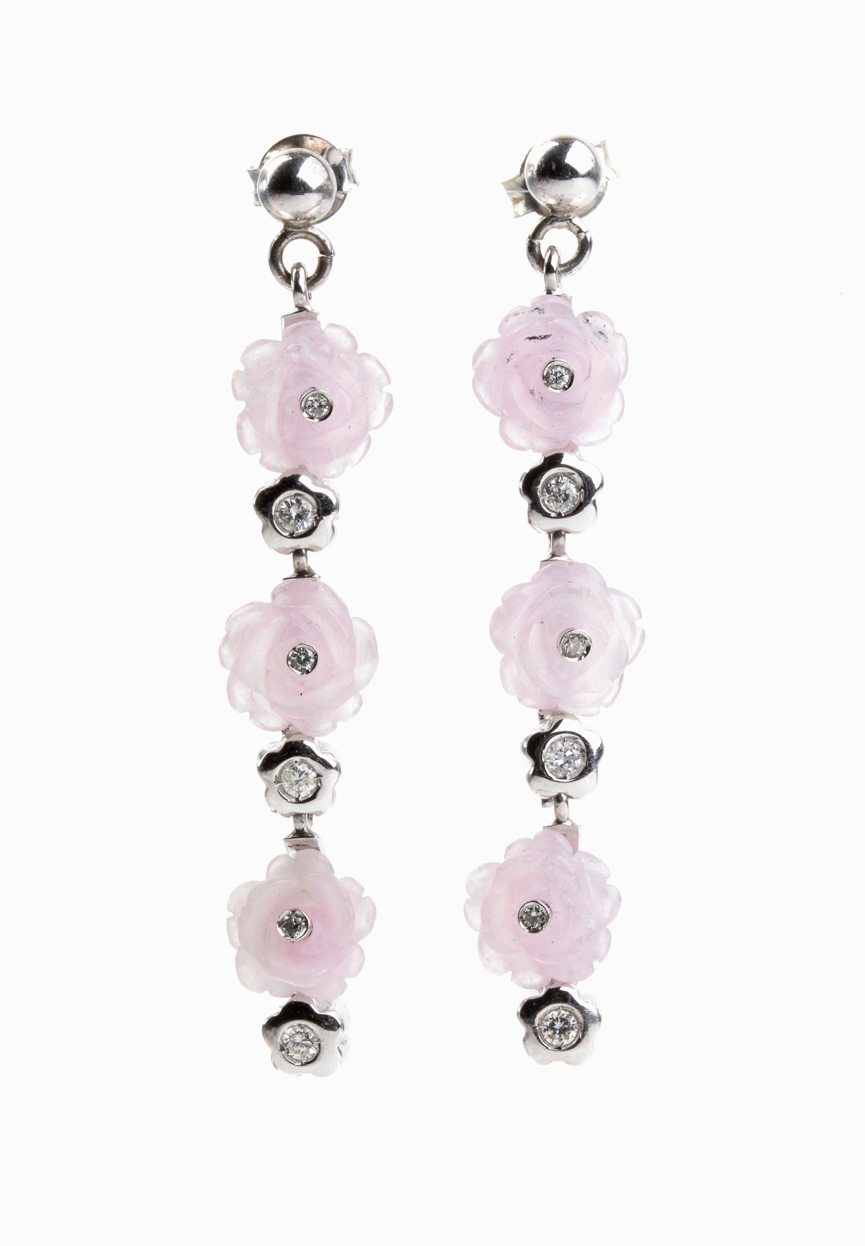 in oro bianco 18k, ciascuno con linea snodata di diamanti separati da piccoli fiori scolpiti in giada lavanda.