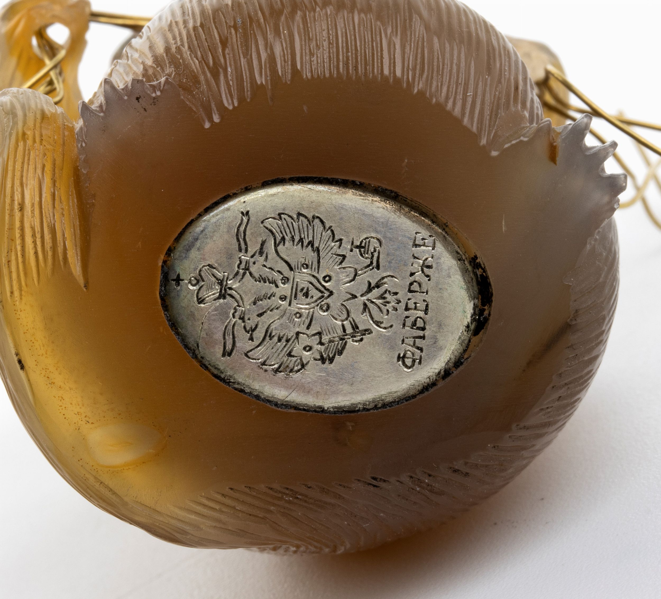 modellato realisticamente e finemente.Nella parte sottostante l'aquila imperiale e l'iscrizione Fabergé in cirillico.Stato di conservazione: ***** eccellente.