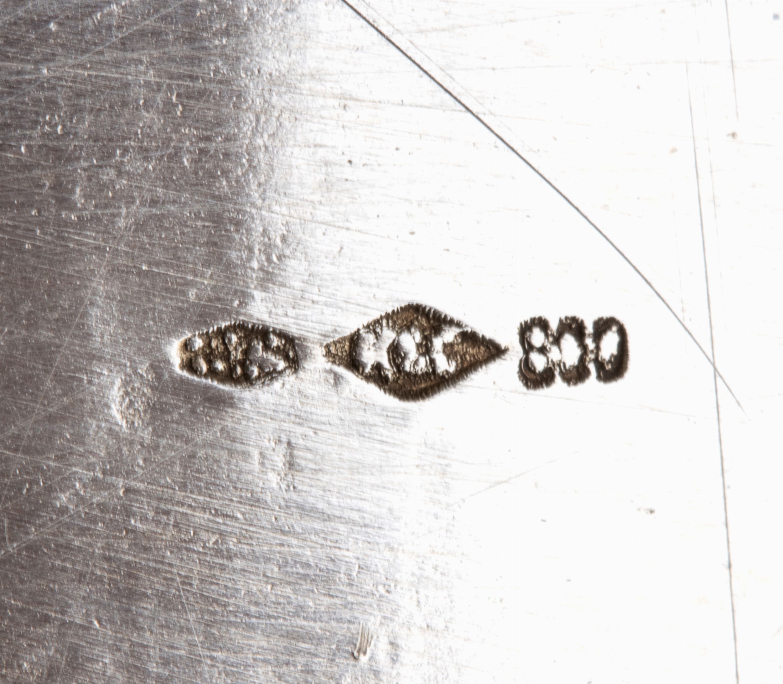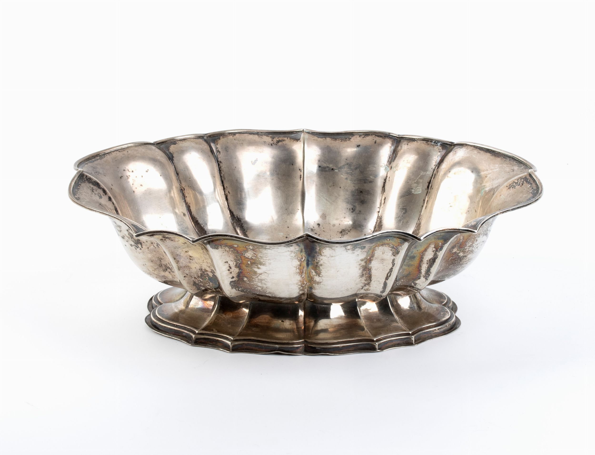 di forma ovale con costolature verticali. Argento 800/1000, punzonato 800 - ReC - 20 marchio del fascio AL, Argentiere Ricci & C. S. p. A.Stato di conservazione: **** buono, minori segni d'uso commensurati all'uso nel tempo.