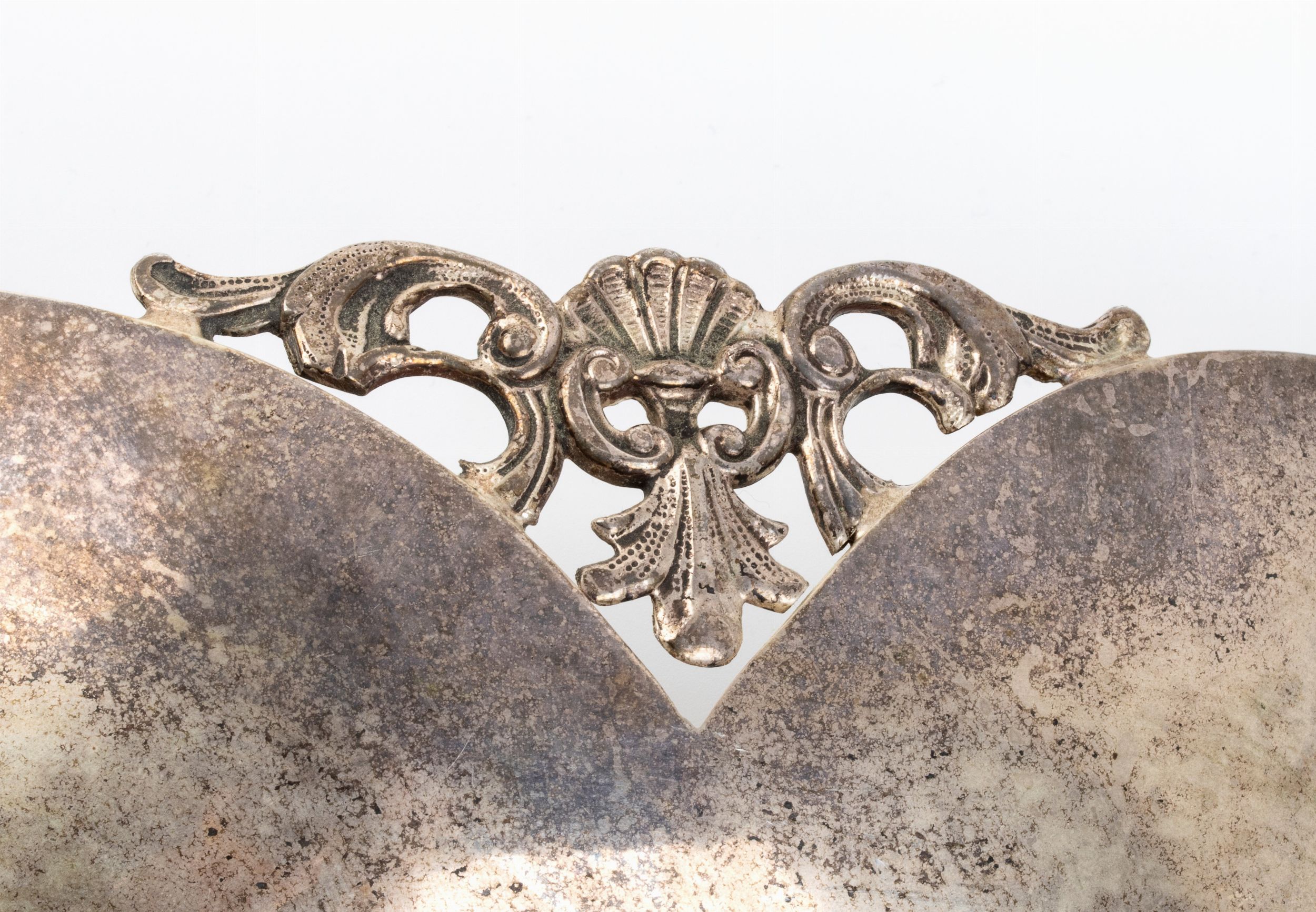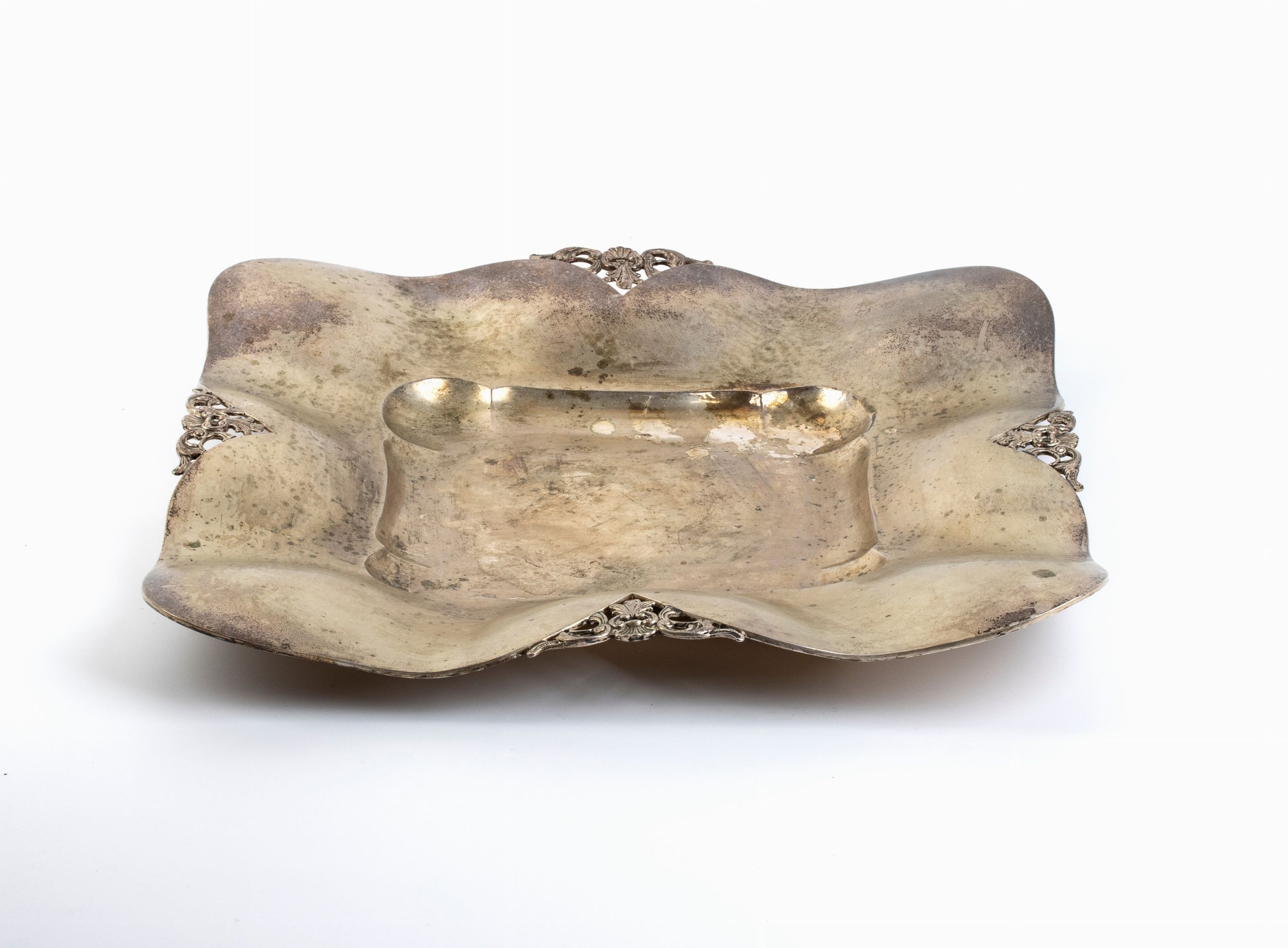 di forma quadrata e ondulata con dettagli fogliati. Argento 800/1000.Stato di conservazione: *** discreto, segni d'uso commensurati all'uso nel tempo.