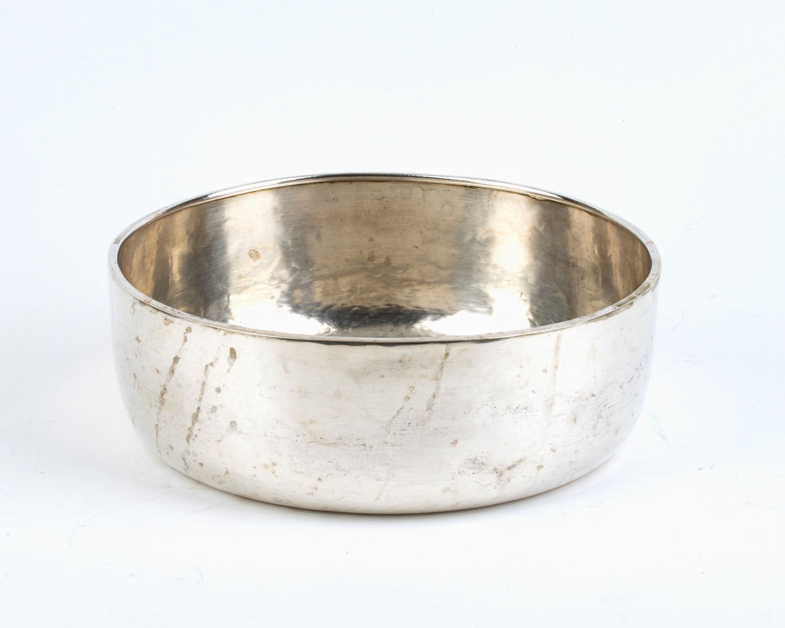 di forma circolare con superficie liscia. Argento 800/1000, punzonata BR - 800 - 283 FI - 1973, argentiere Brandimarte.Stato di conservazione: **** buono, minori segni d'uso commensurati all'uso nel tempo.